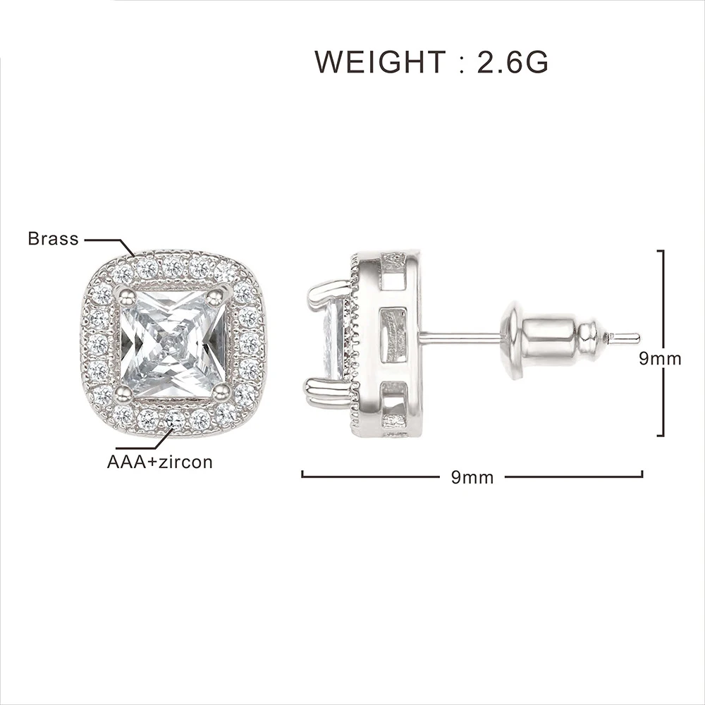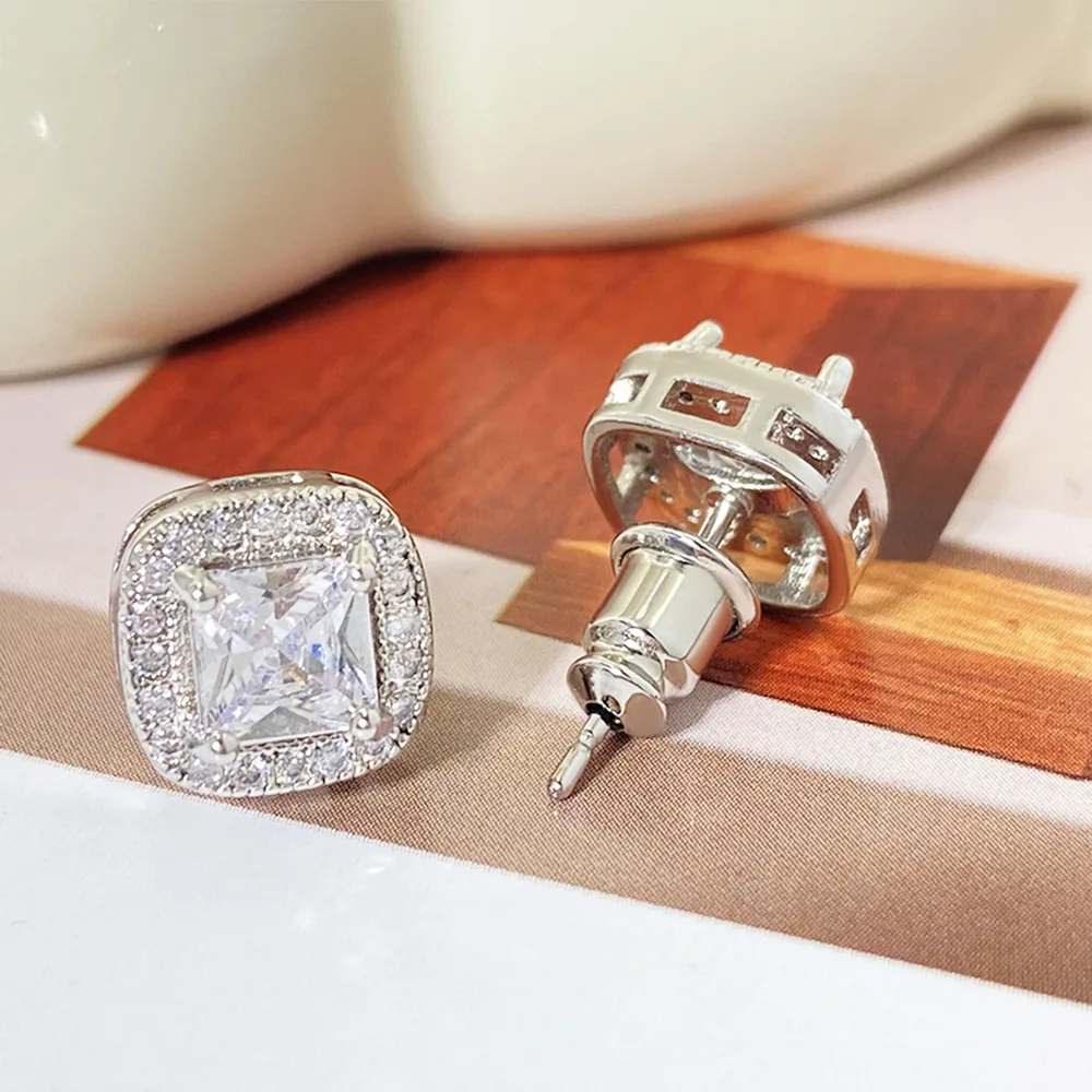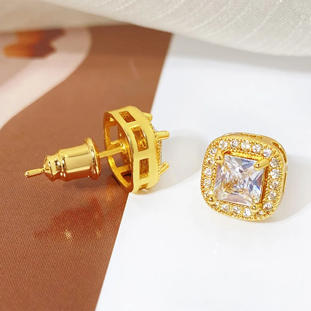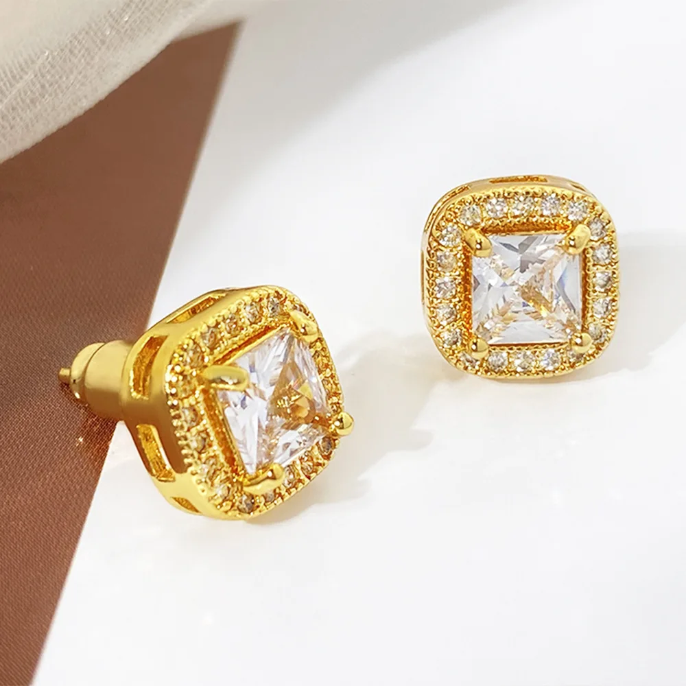 Selected Fashionable Gold Plated Square Sparkling Cz Stud Earrings Material Elegant Women's Daily Versatile Accessory