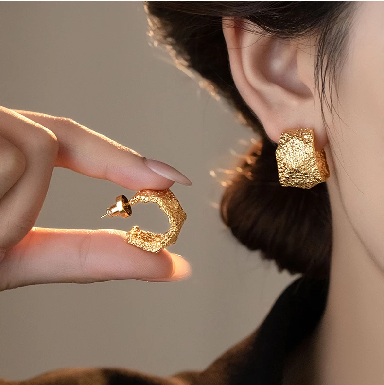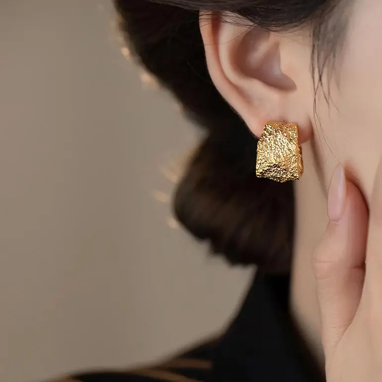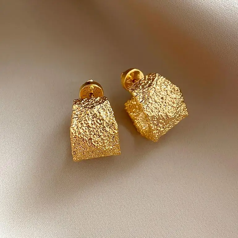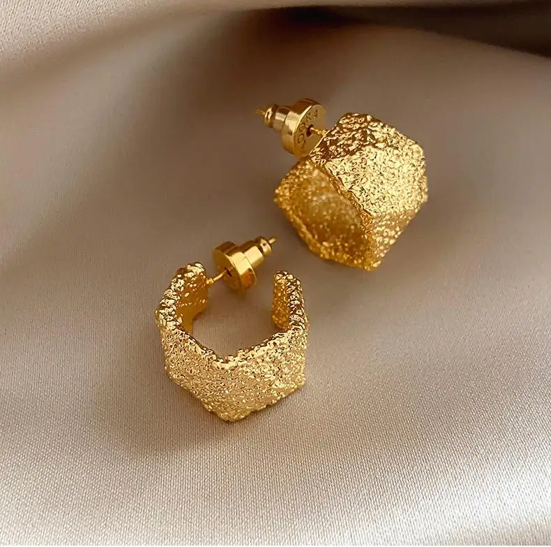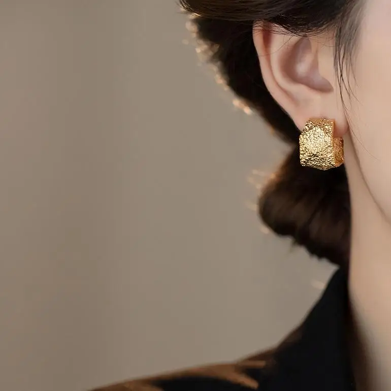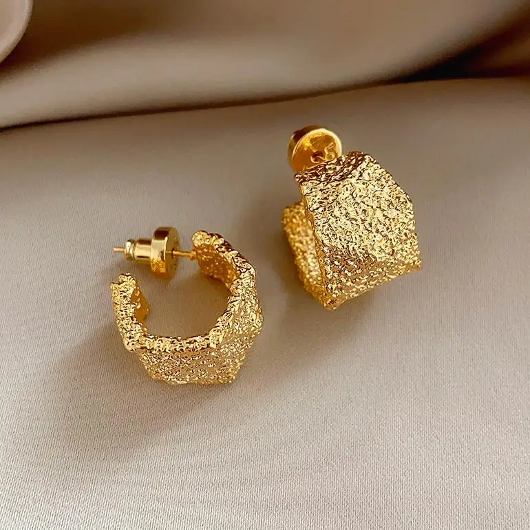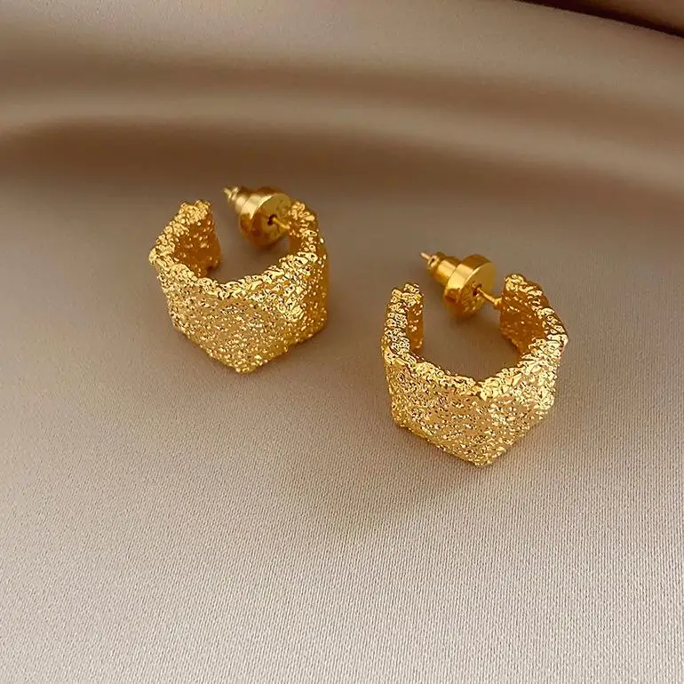 18k Gold Plated Frosted Textured Large C-shaped Earrings Gold Filled Open Earrings for Women