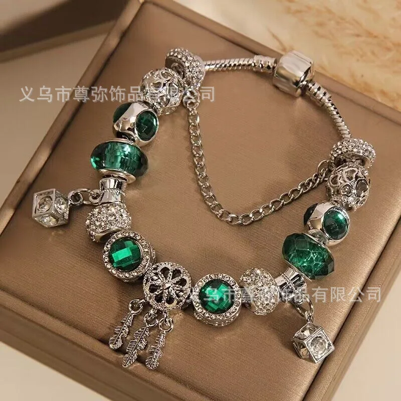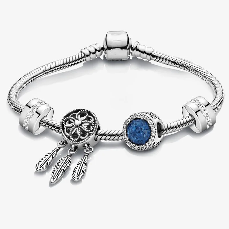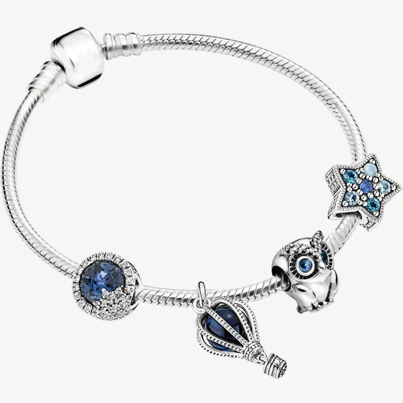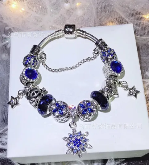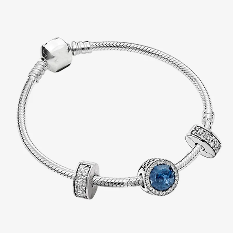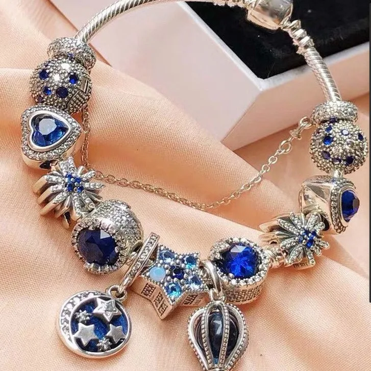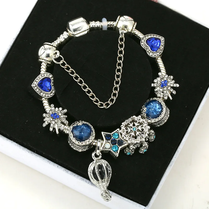 European Style Stainless Steel Bracelet for Women Blue Crystal Beads and Charm Accessories Fashion Tennis Bracelets