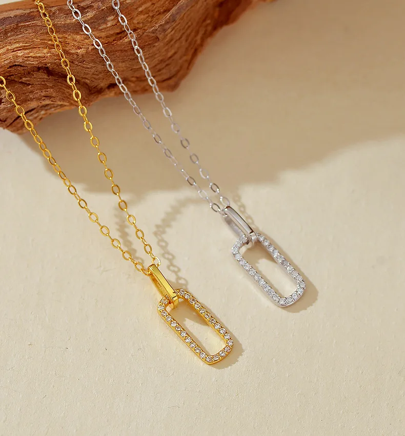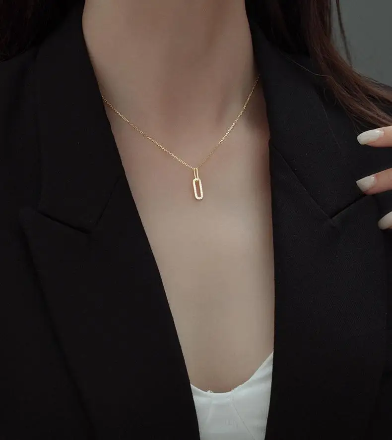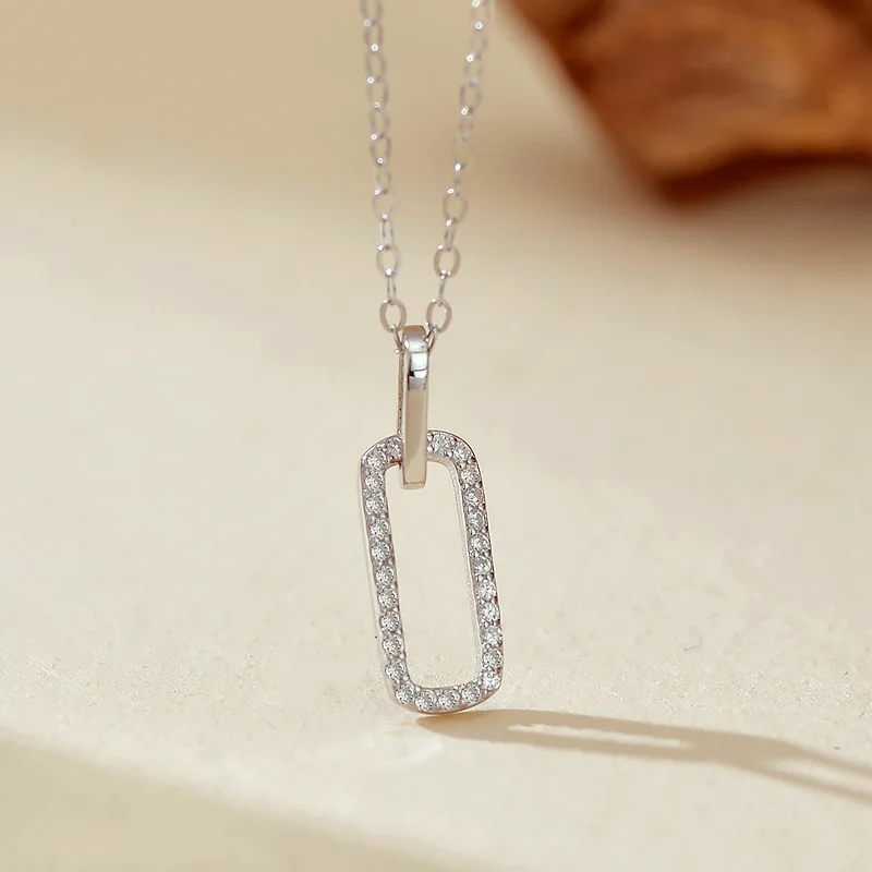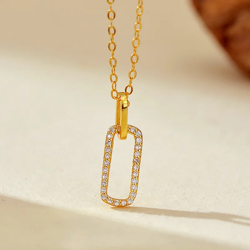 Fine Jewelry Hollow Square Buckle 18k Gold Plated Necklace S925 Sterling Silver Geometric Zircon Pendant Necklaces for Women