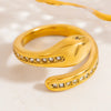 Fashion 18k Gold Plated Stainless Steel Ring Zircon Snake Open Ring Rings for Women