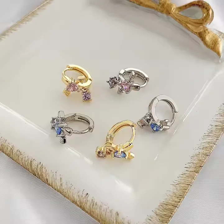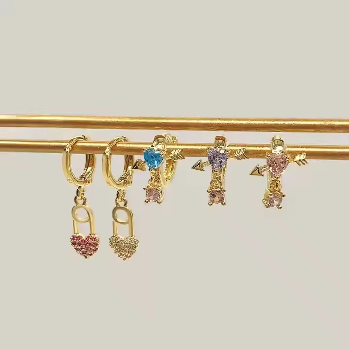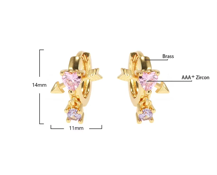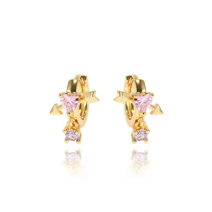 Premium Heart Shape Cz Earrings With 18K Gold Plated Copper Alloy for Elegant Daily Wear and Fashionable Necessity for Women
