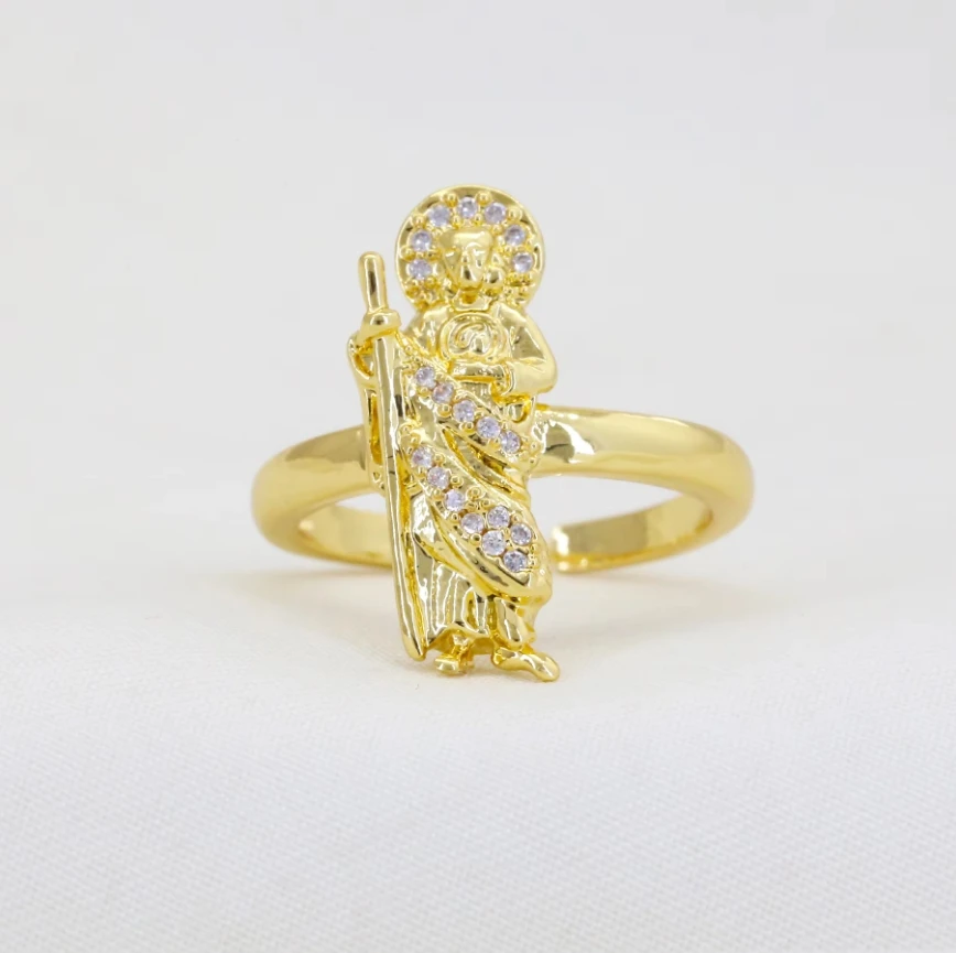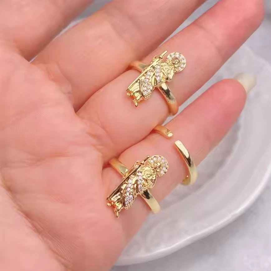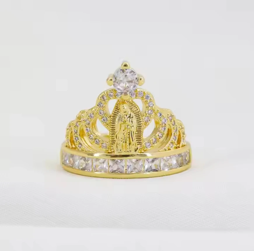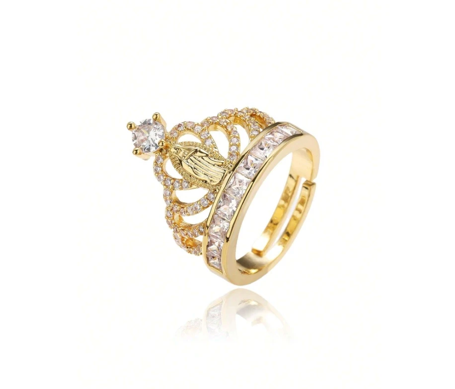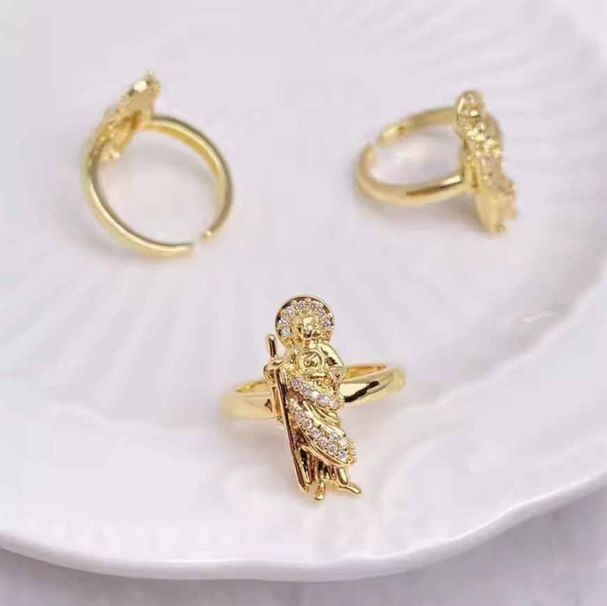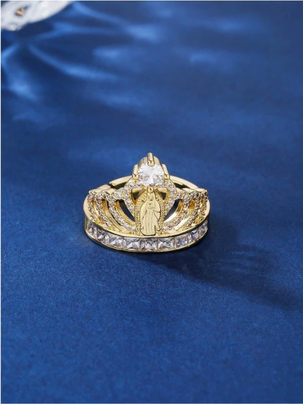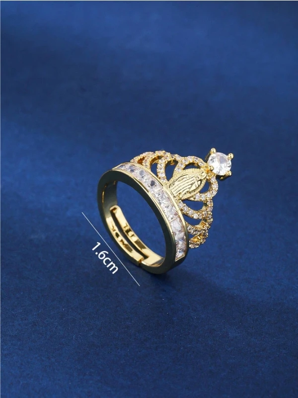 Niche High-Class Personality Cubic Zirconia Jesus Ring Crystal Big Crown Virgin Mary Opening Rings Copper Gold Plated Jewelry