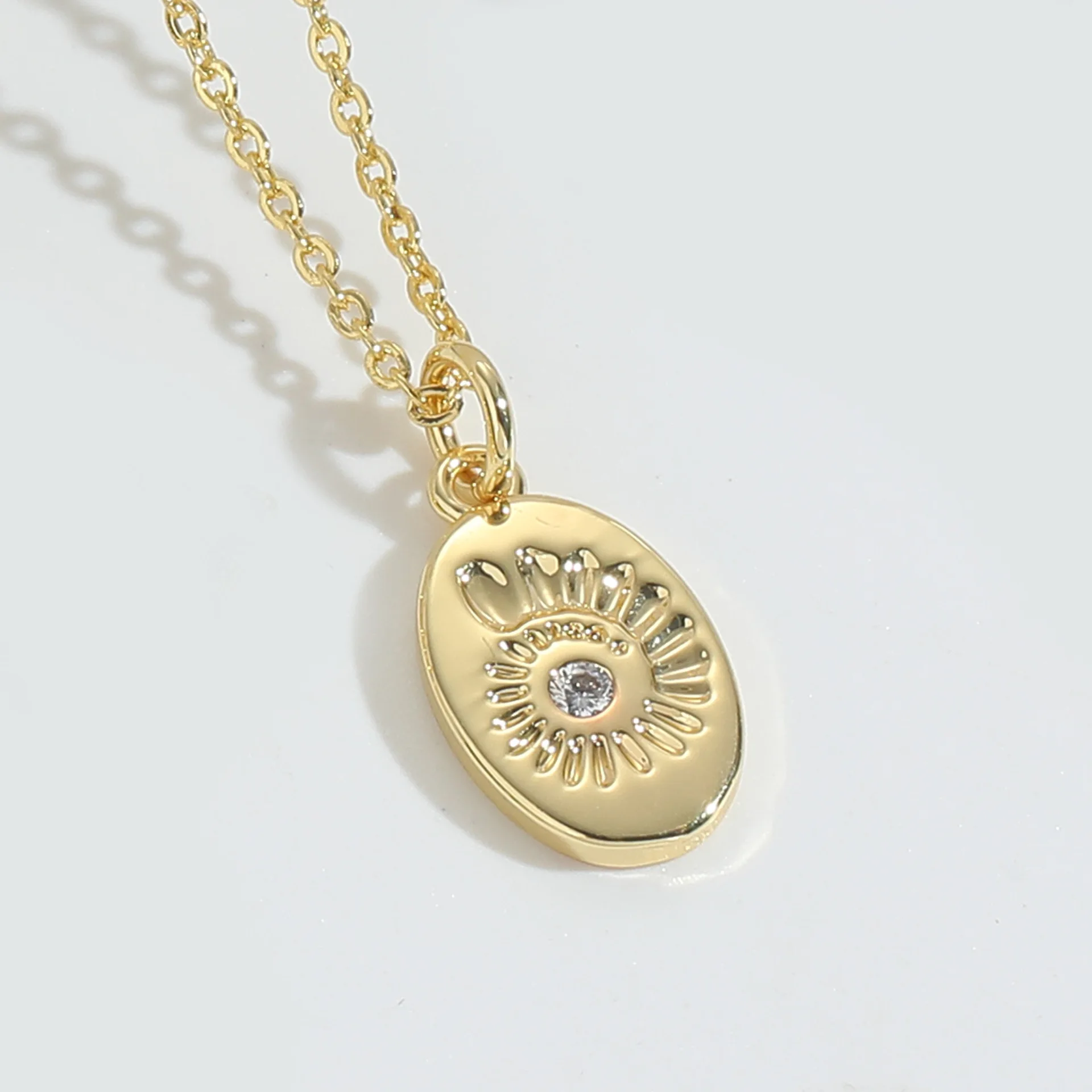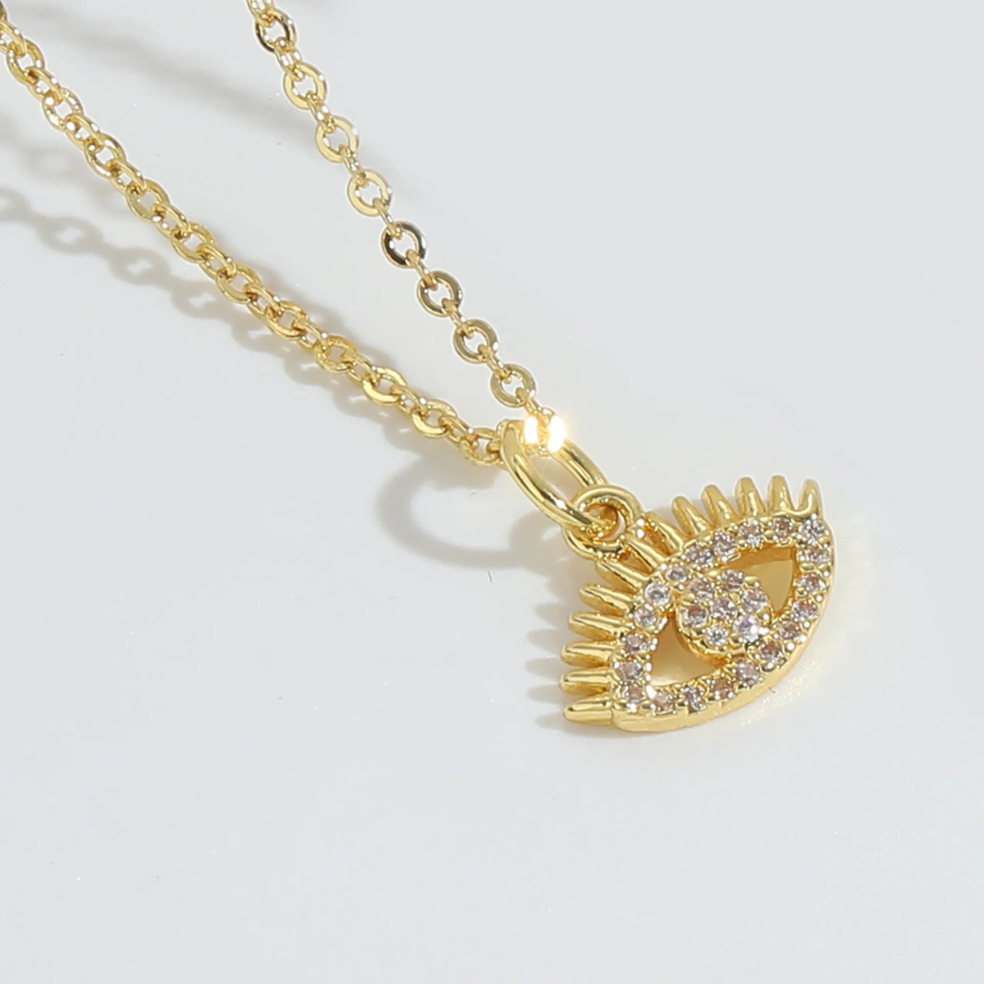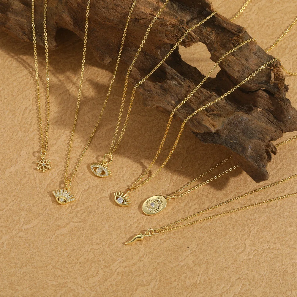 Hollow Copper Geometric Pendant Necklace Mystic Eye Adjustable Chain for Women Fashion