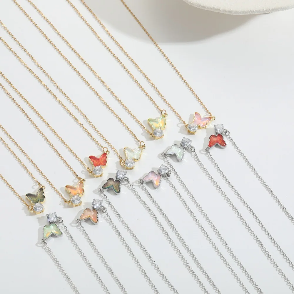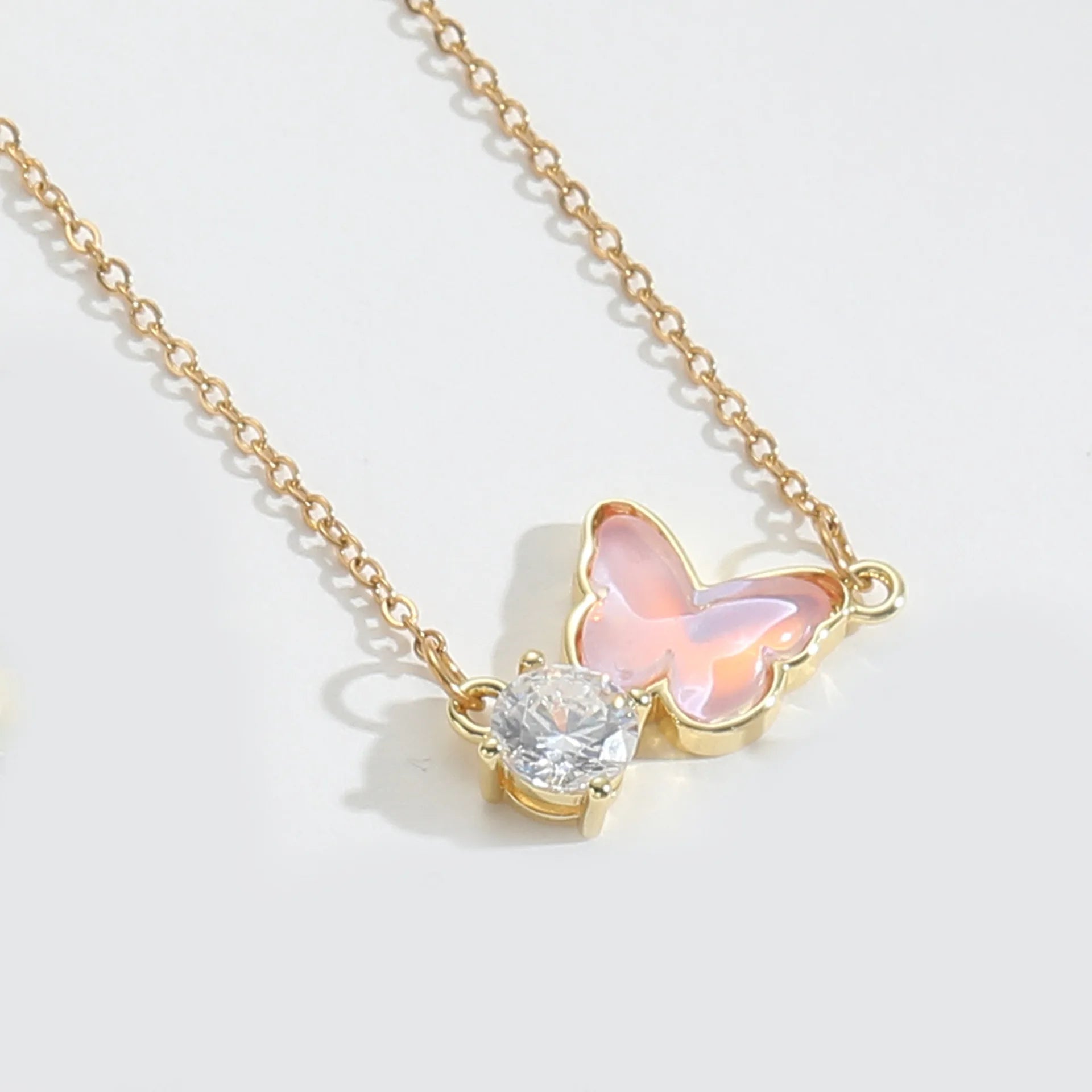 Copper Gradient Butterfly Necklace with Antioxidant Coating Boho Jewelry for Women Adjustable Chain Gift