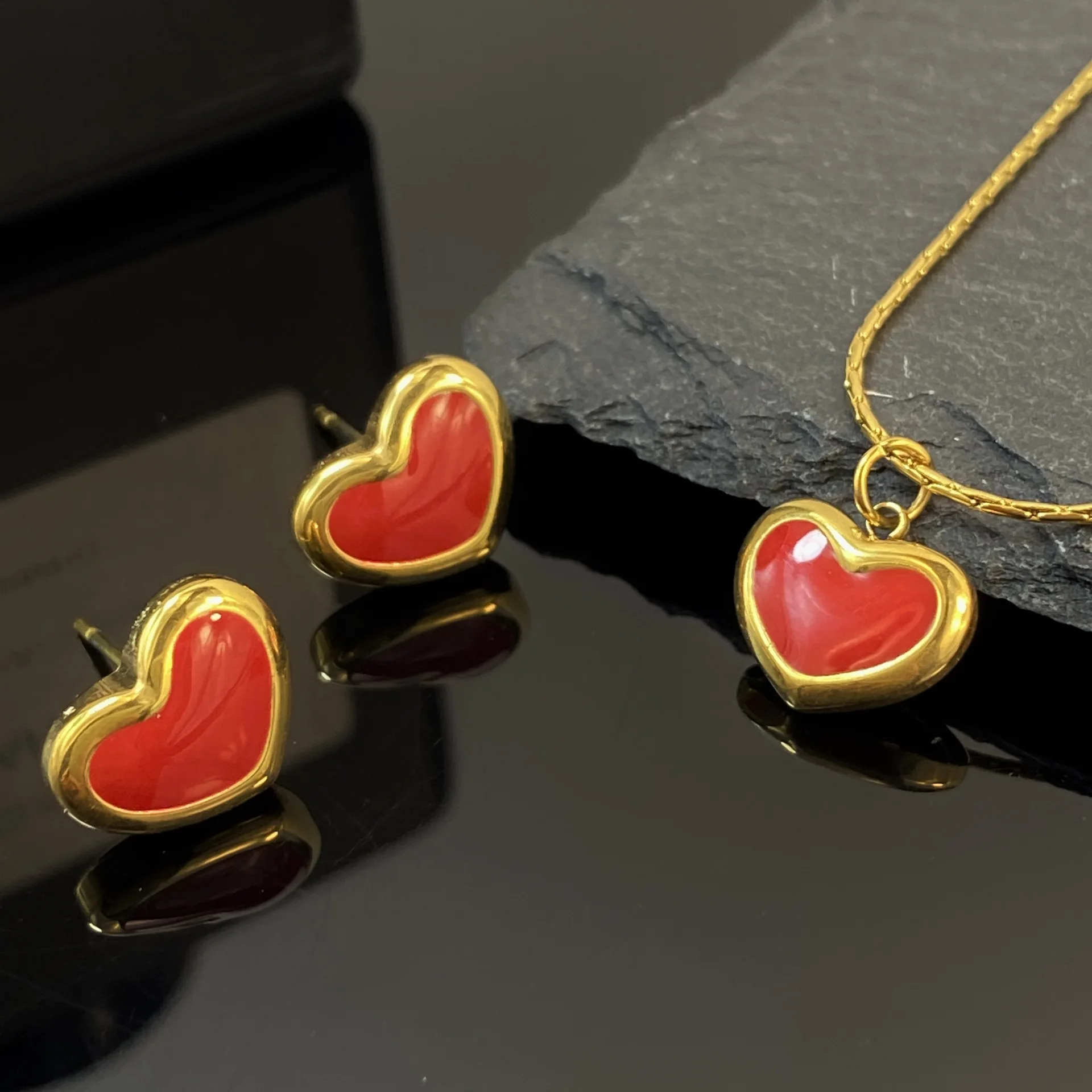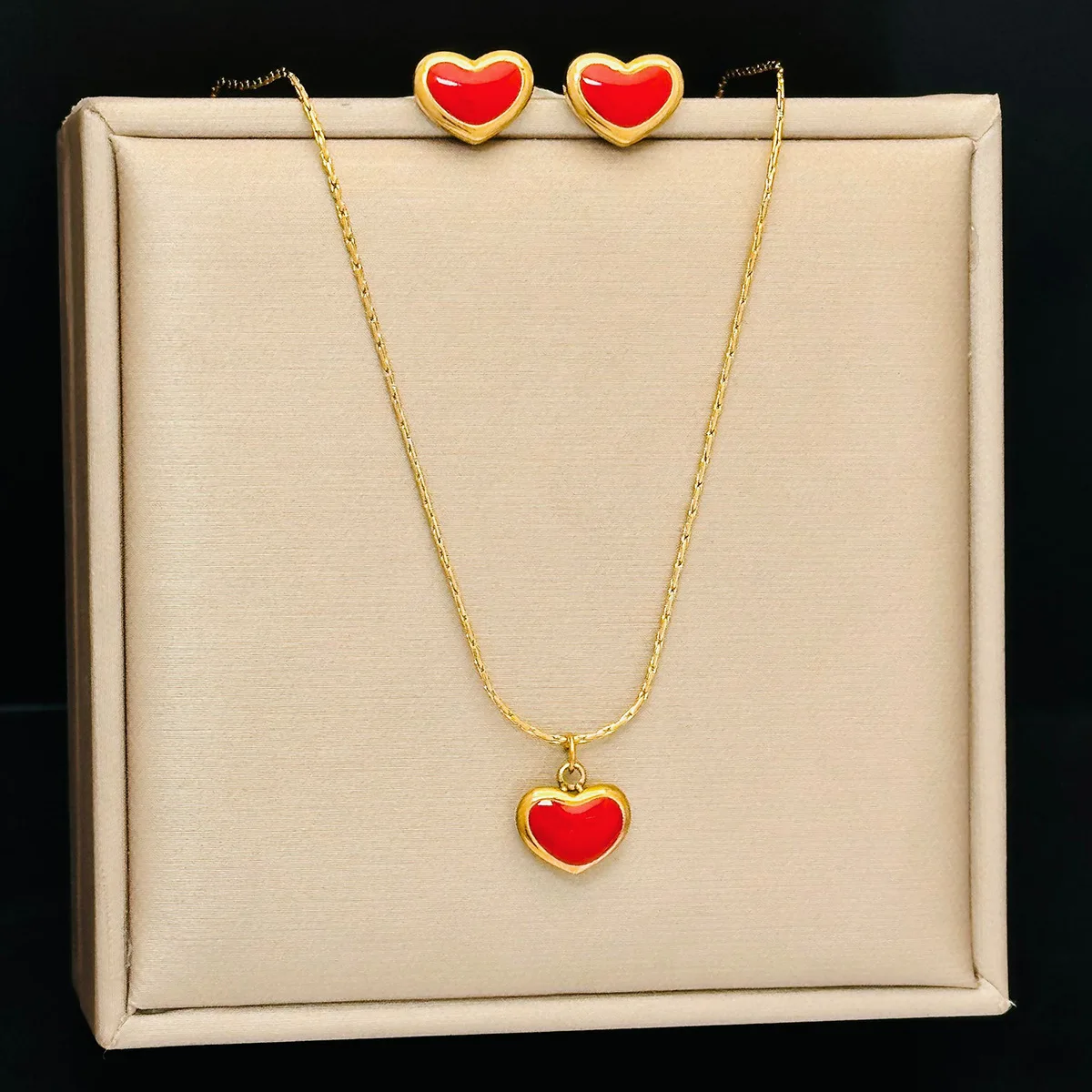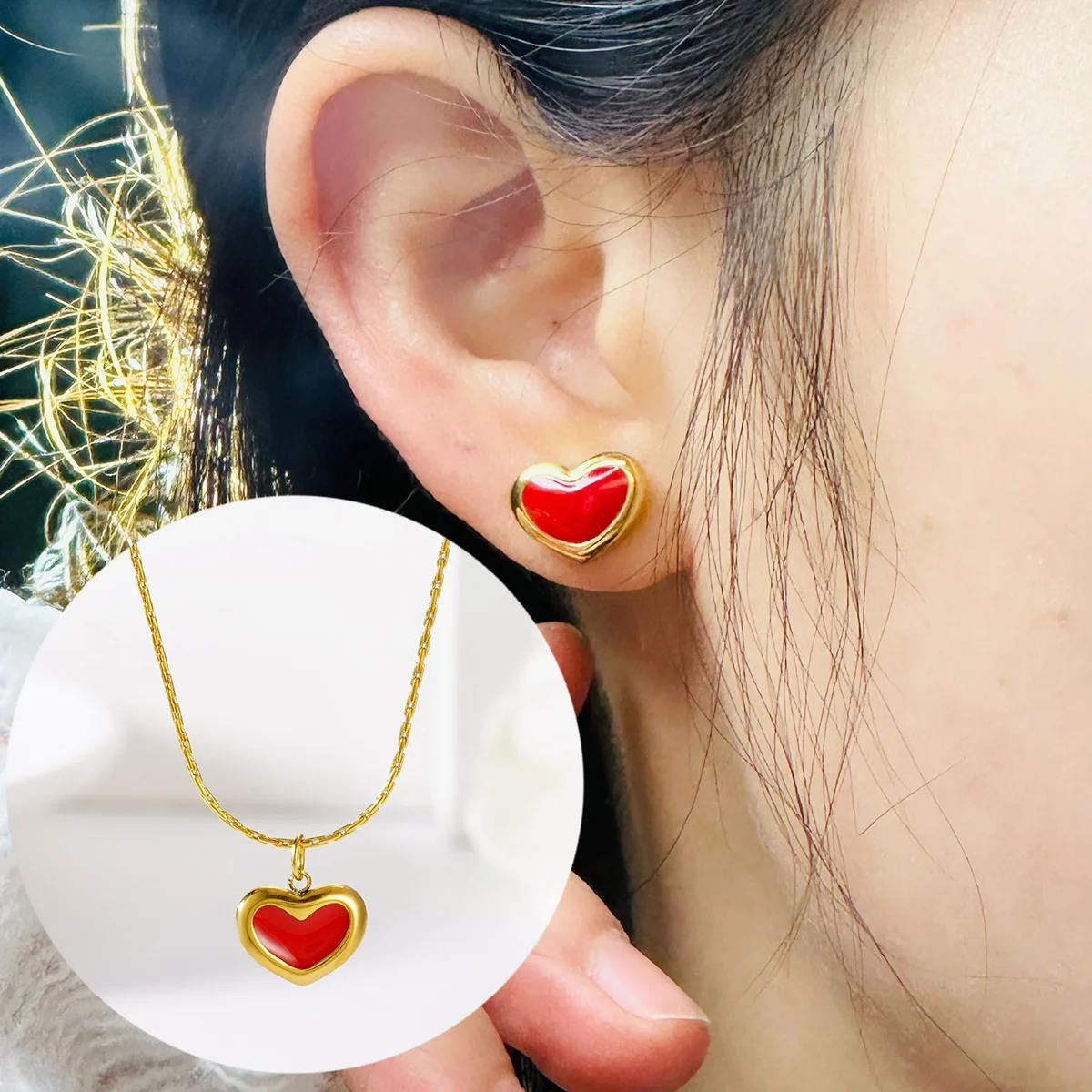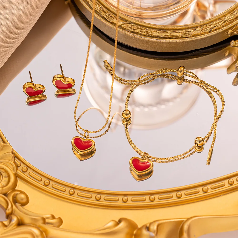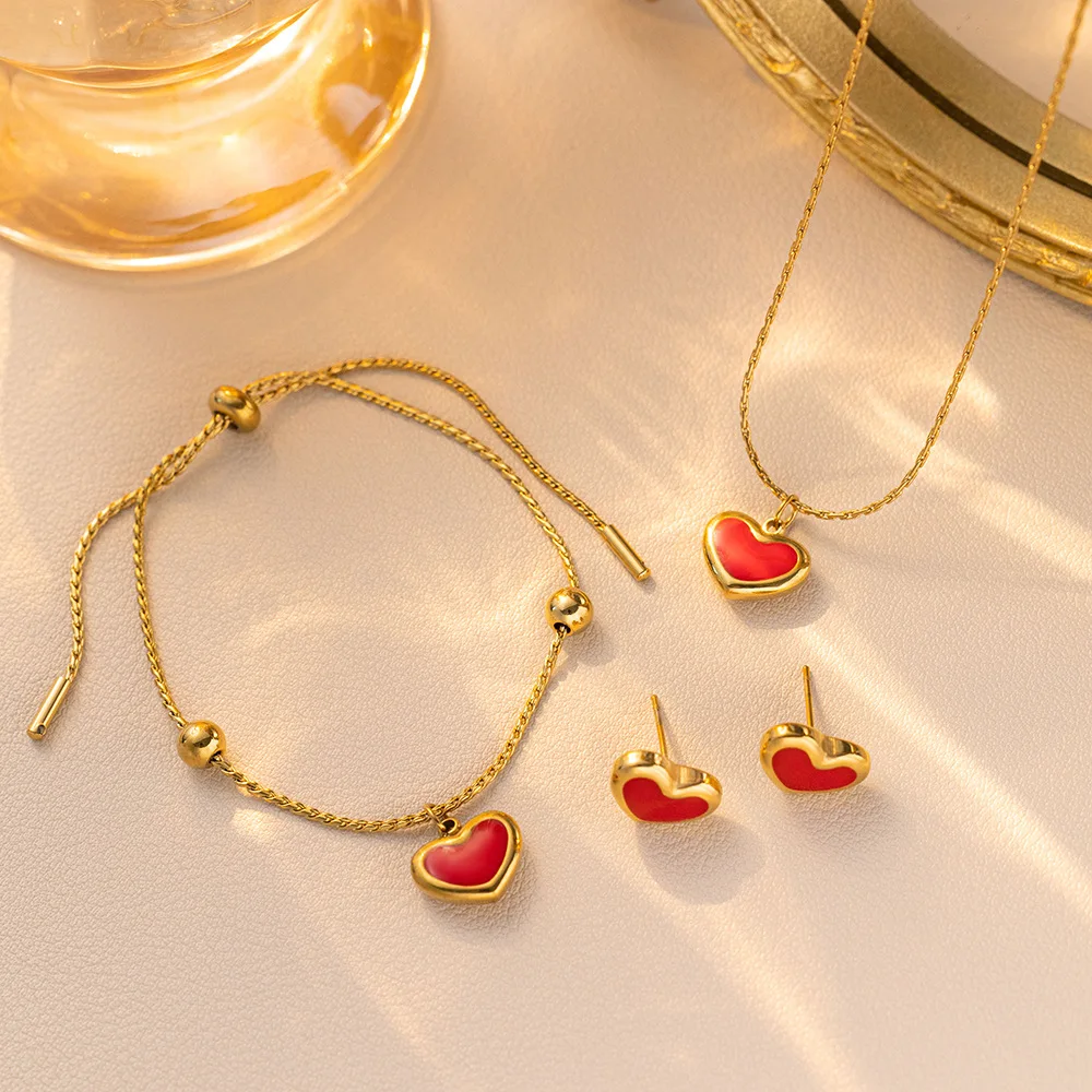 Valentines Day Gift 2025 Fashion Jewelry Sets Gold Plated Red Heart Fashion Earring Bracelets Necklace Jewelry for Women