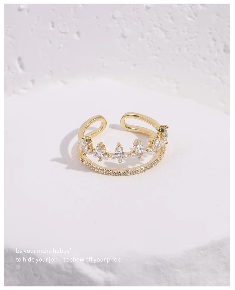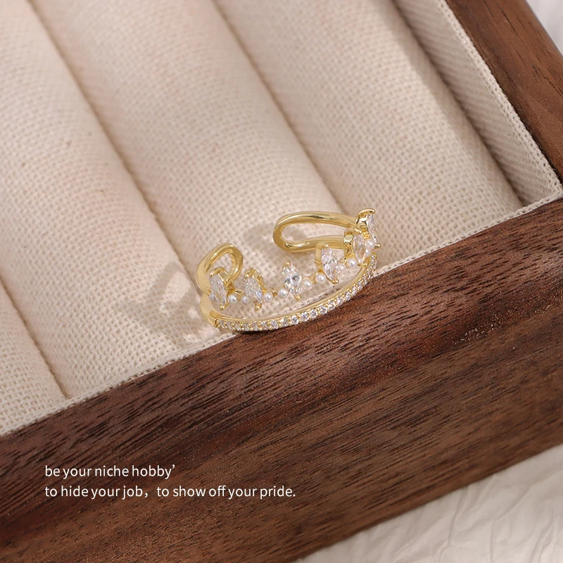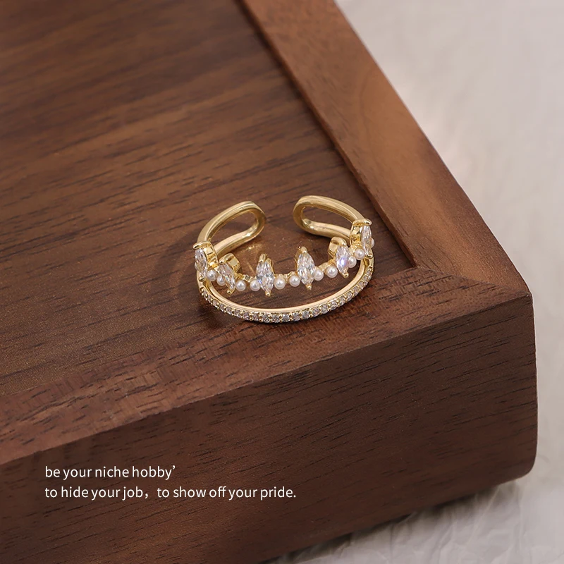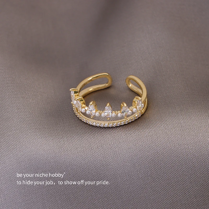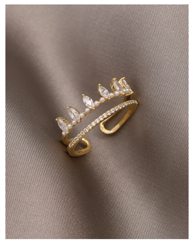 Wholesale Fashionable Simple Crown Zircon Ring Open Ring 18k Gold Plated Cute Stack Adjustable Ring for Women Gift