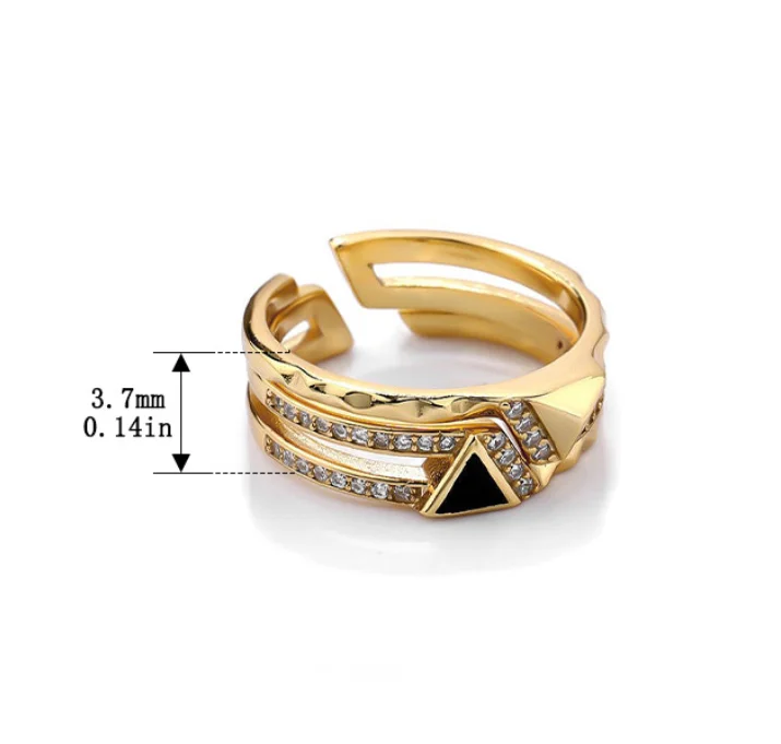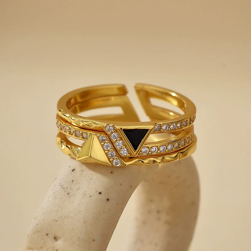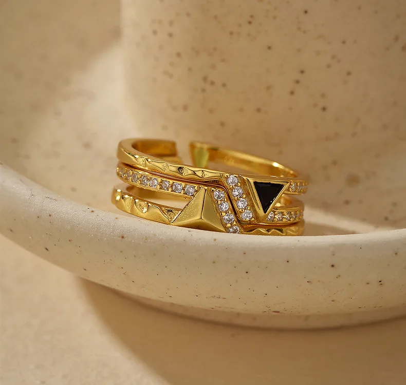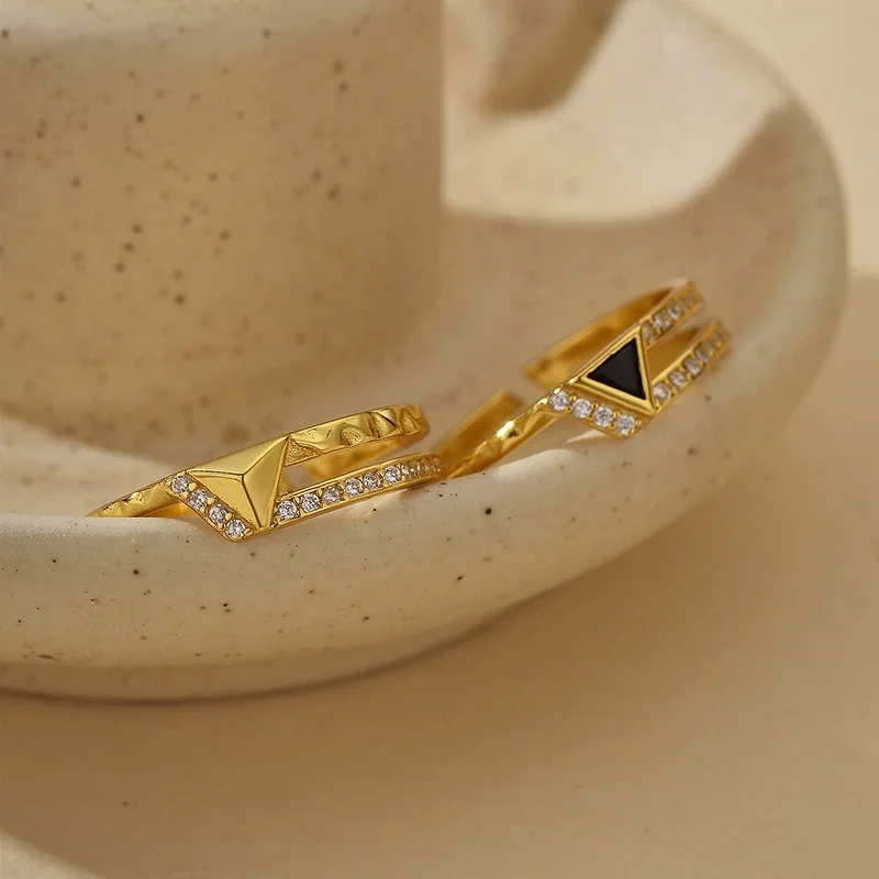 Wholesale Fashion 925 Silver Retro Geometric Triangle Zircon Two-in-one Open Adjustable Rings for Women