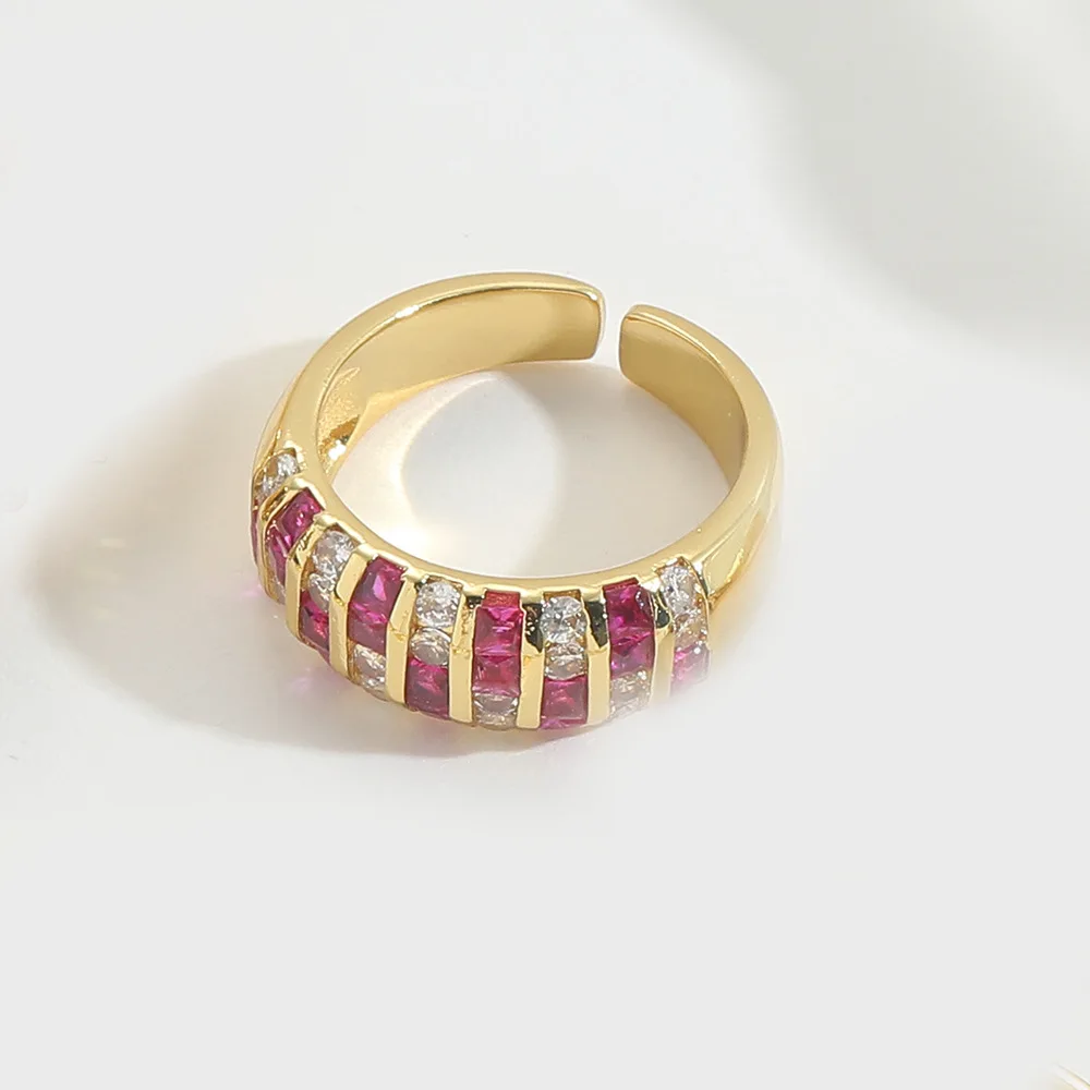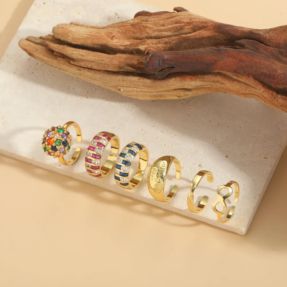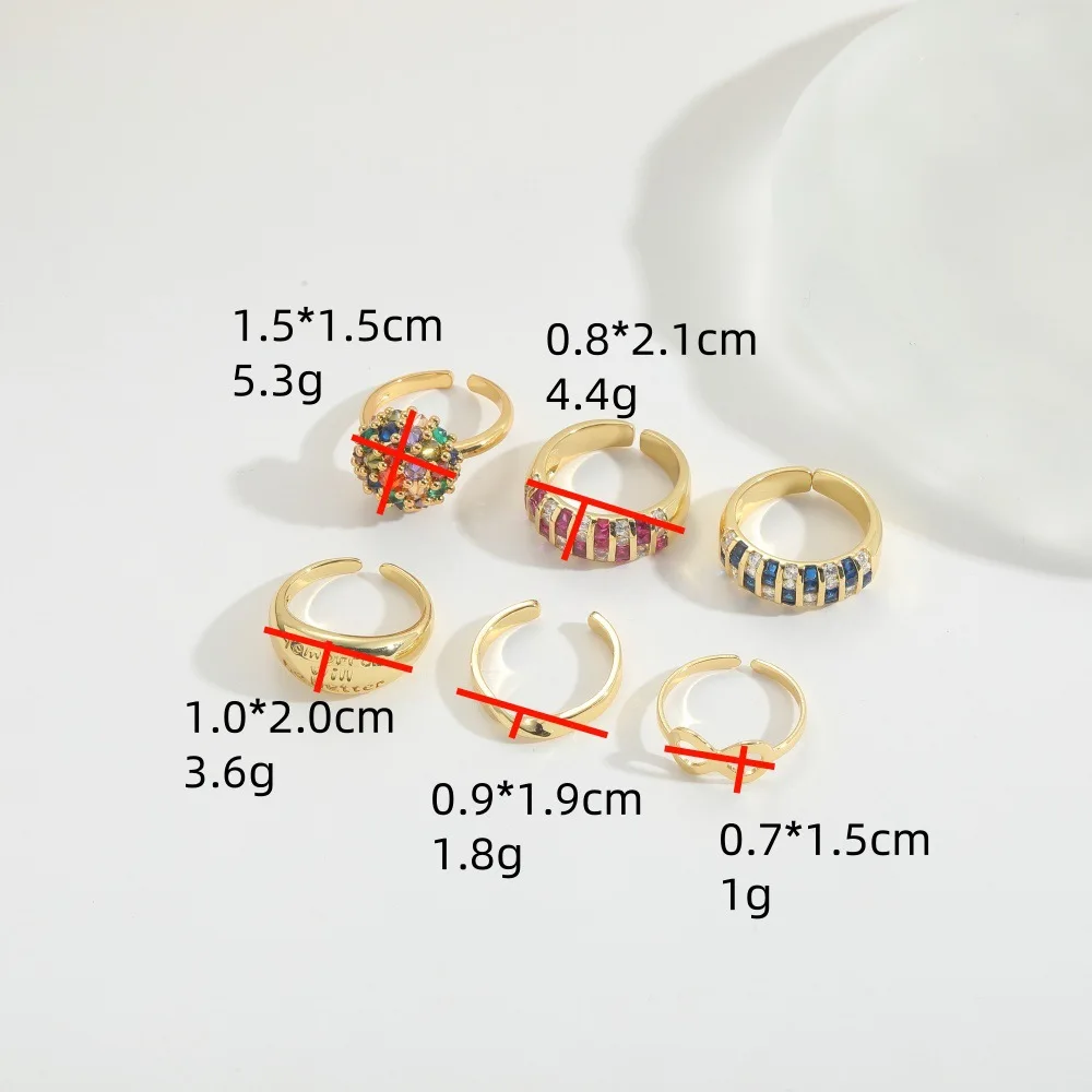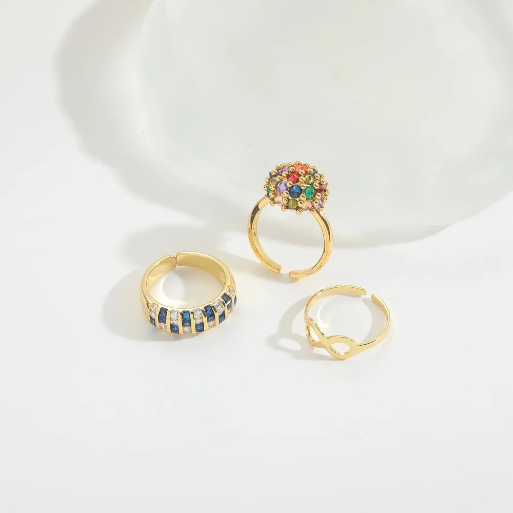 Minimalist Copper Geometric Colorful Zircon Rings Set for Women Adjustable Wedding Party Jewelry Gift with Multicolor Stones