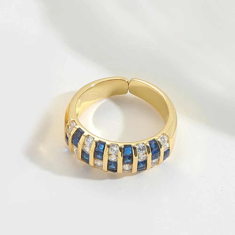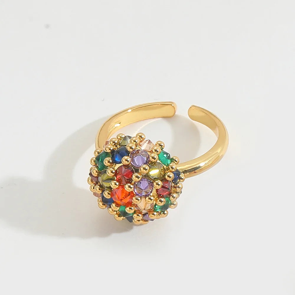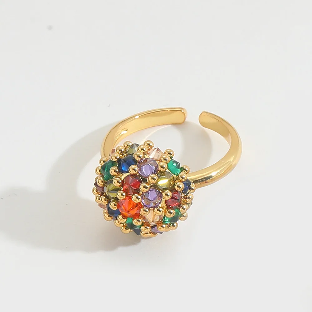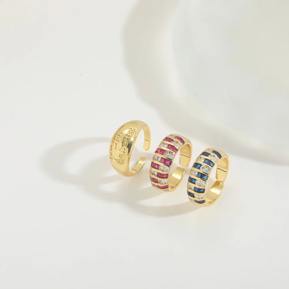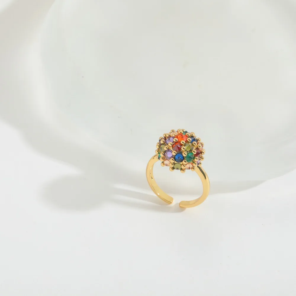 Minimalist Copper Geometric Colorful Zircon Rings Set for Women Adjustable Wedding Party Jewelry Gift with Multicolor Stones