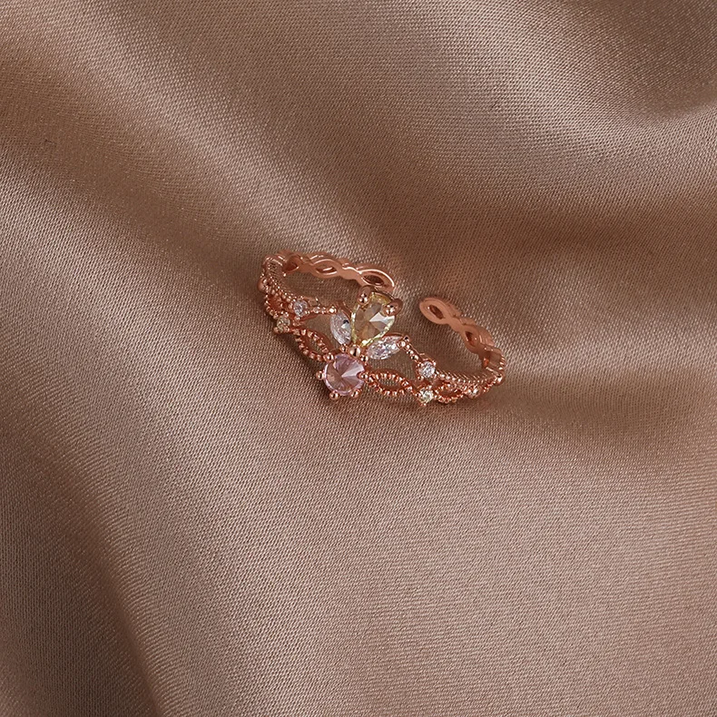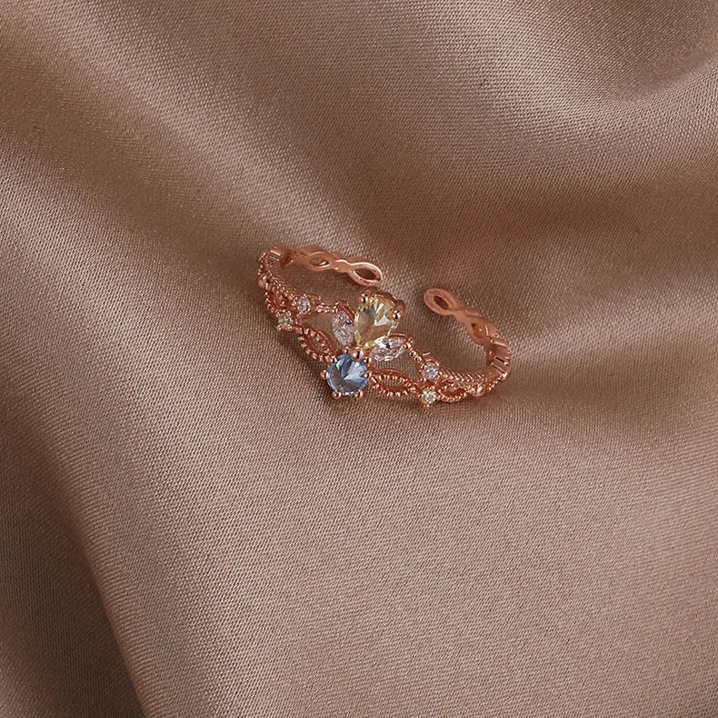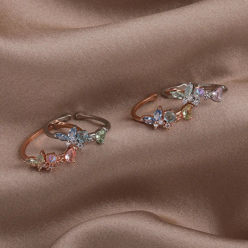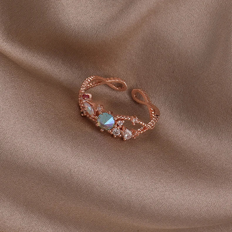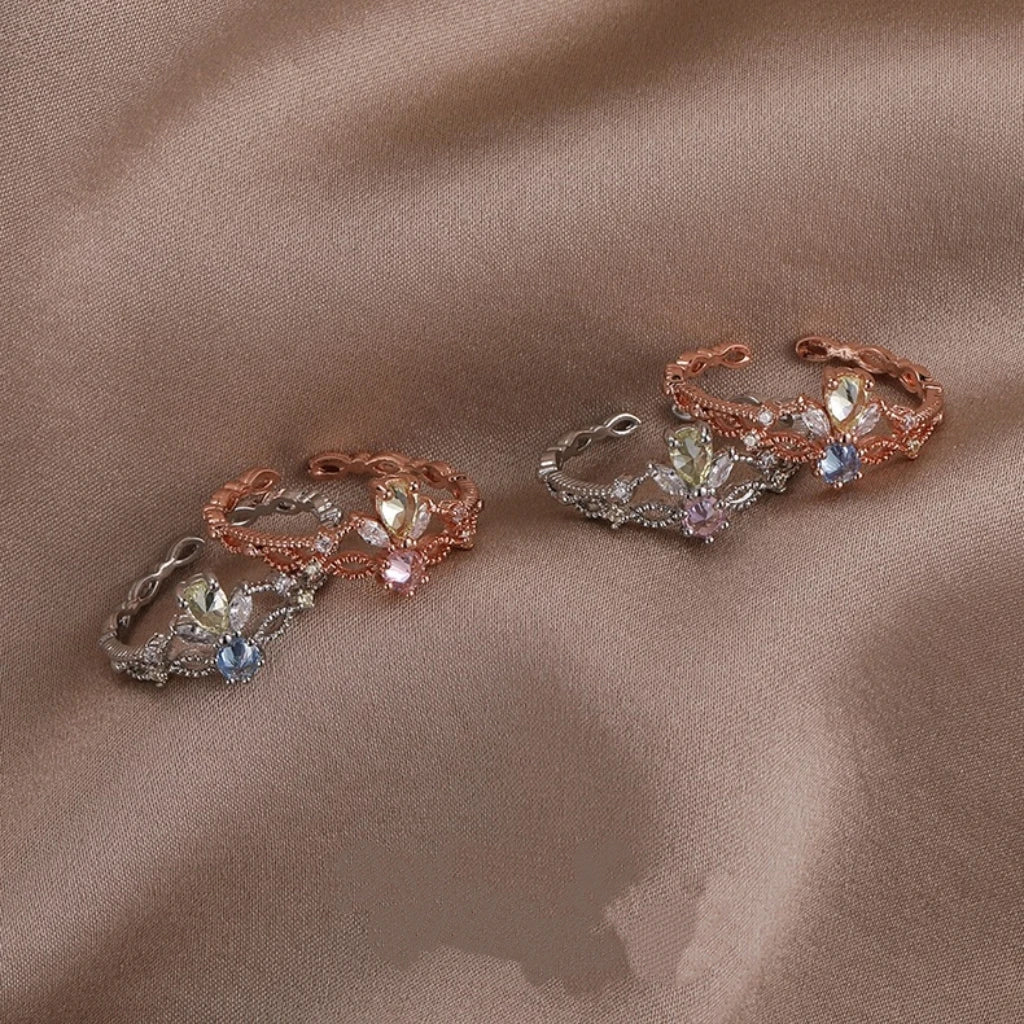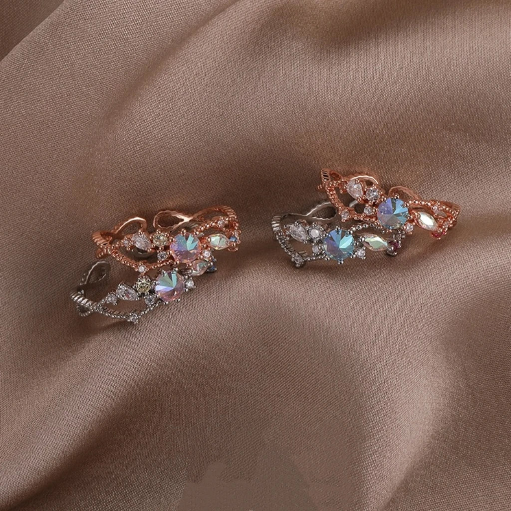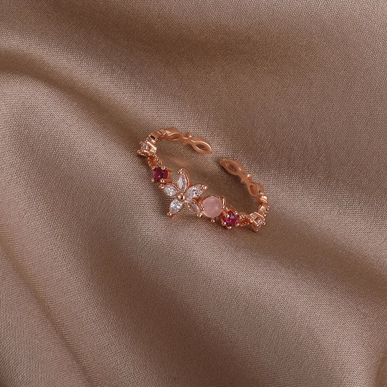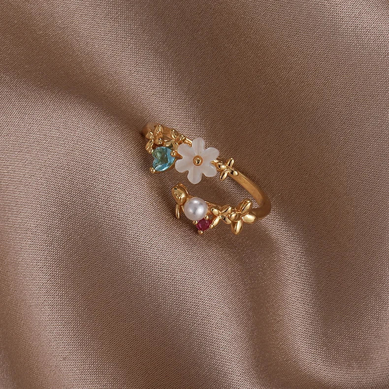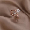 Luxury 18k Gold Plated Adjustable Ring Pearls & Zircon Shell Flower Rings Jewelry Gift for Her