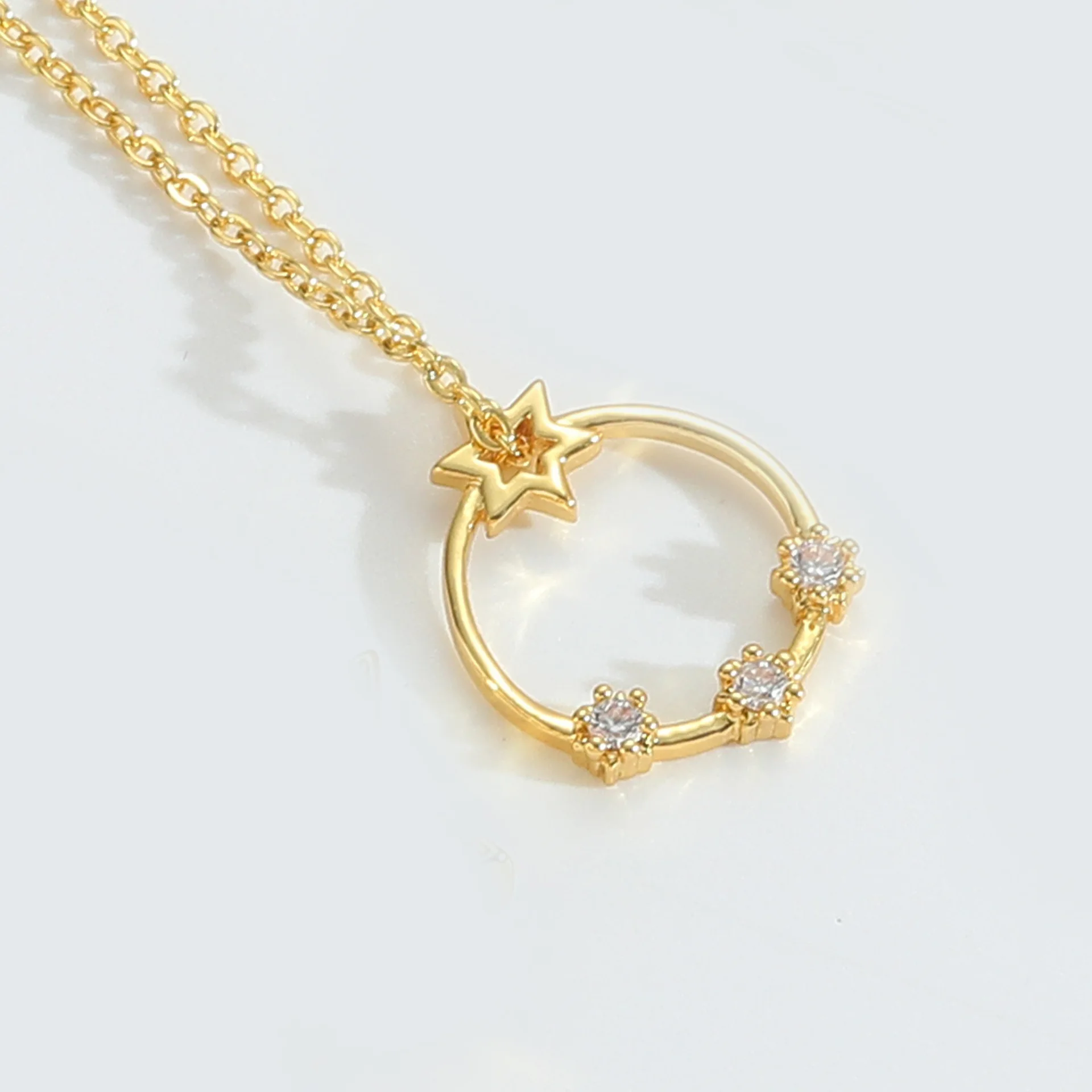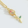 Trendy Vintage Style Copper Rose Gold Circle Pendant Necklace for Women Beaded Bracelet Chain with Pink Zircon Crystal Stone