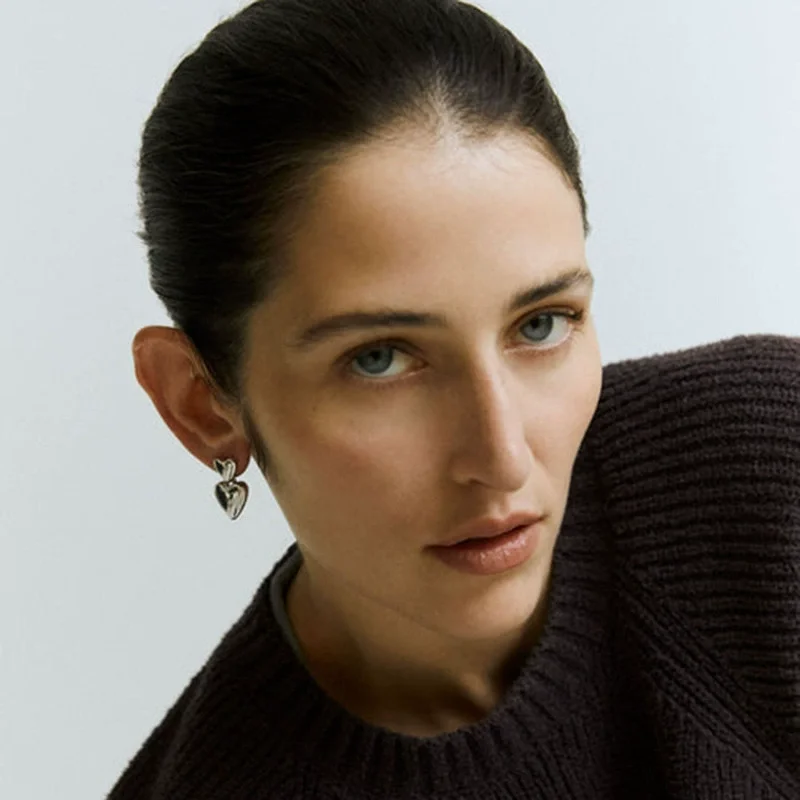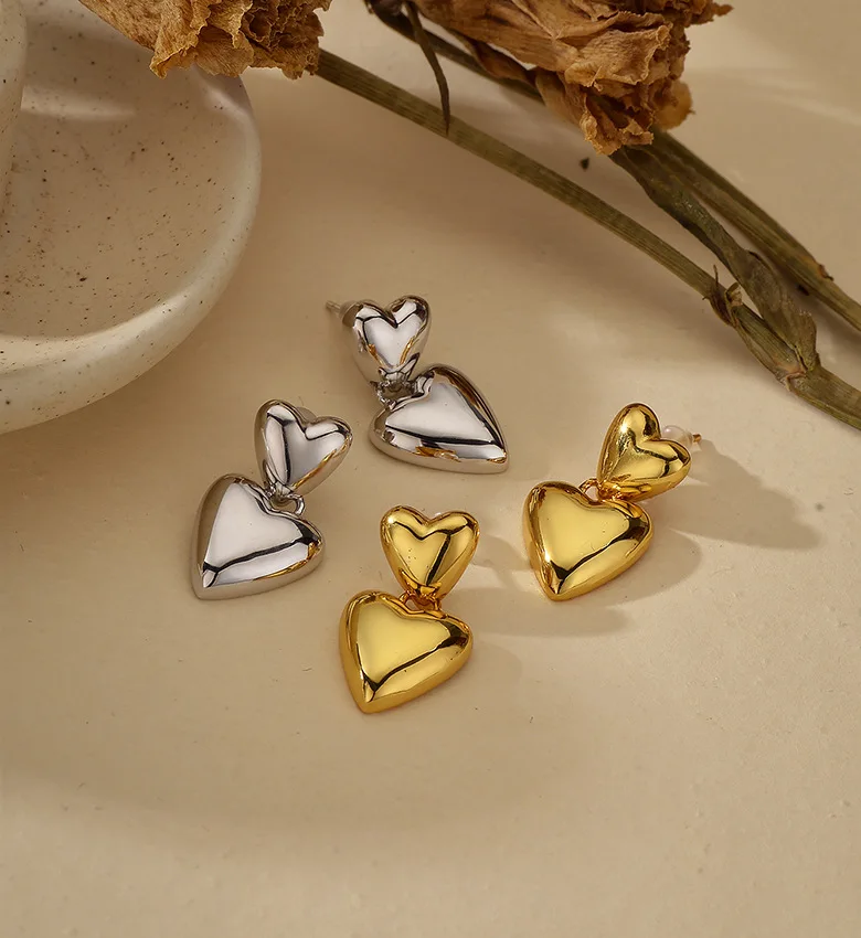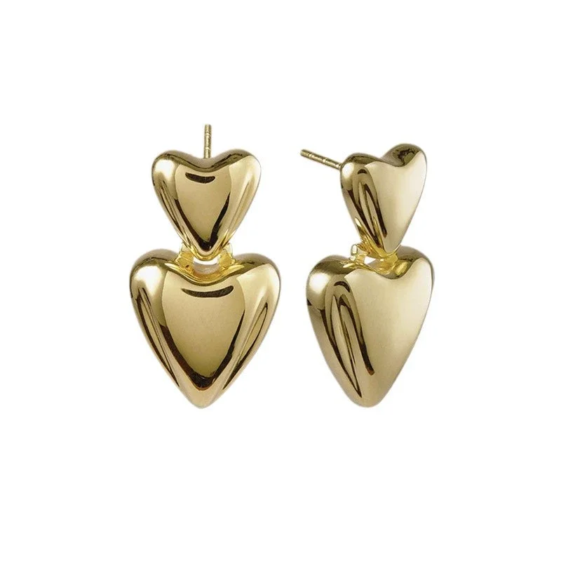 Fashionable 925 Sterling Silver Double Heart Earring for Women 18K Gold Plated Smooth Love Stud Earrings Jewelry