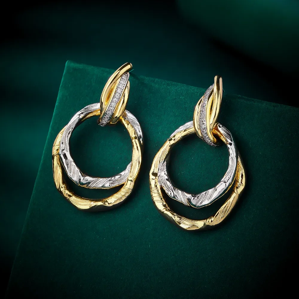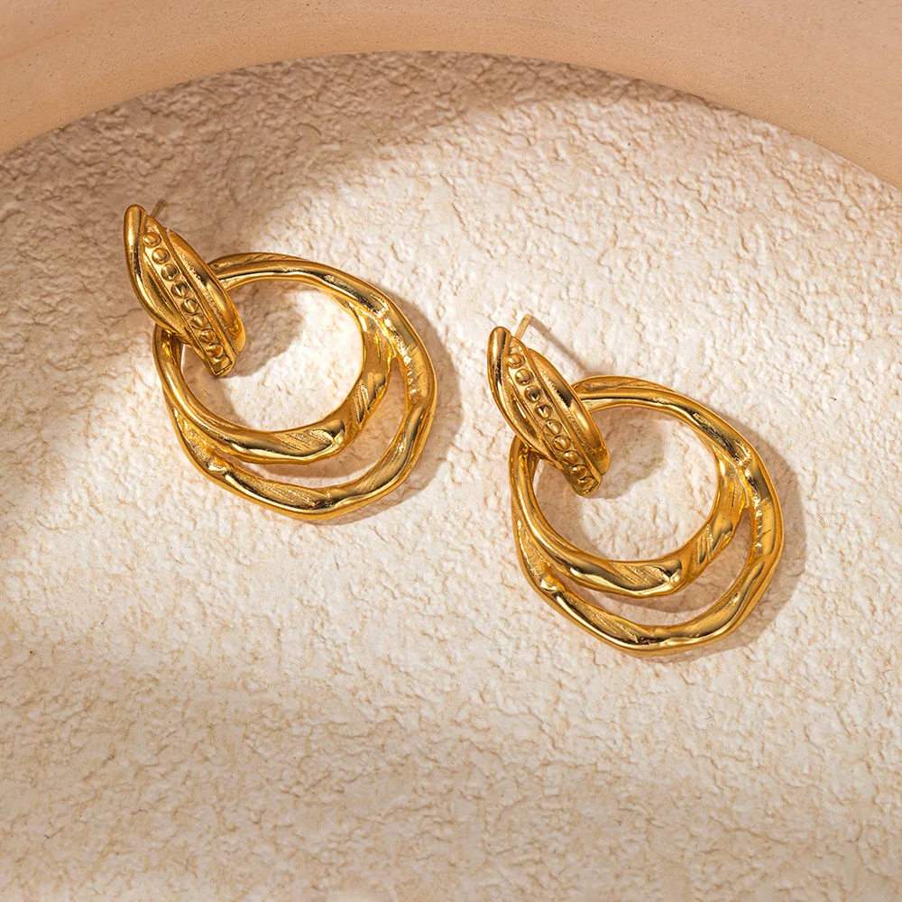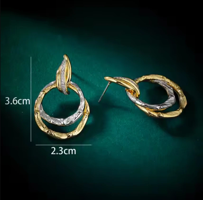 High Quality Geometric Double Circle Knot Stud Earrings Two-Tone Gold Textured Twisted Hoop Earrings for Women