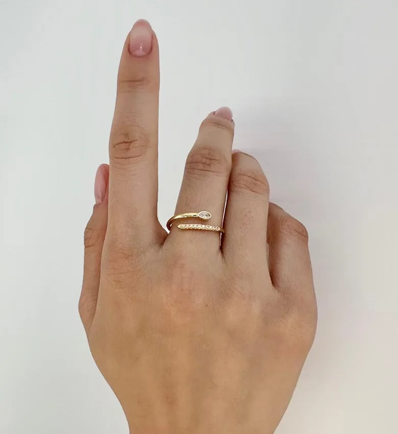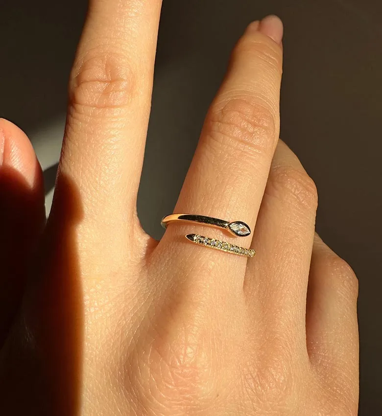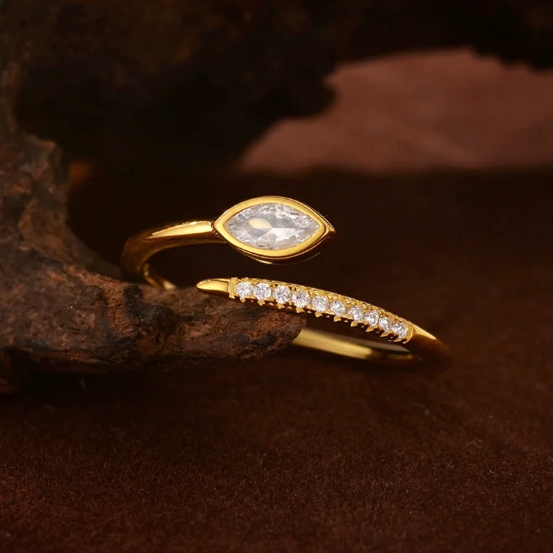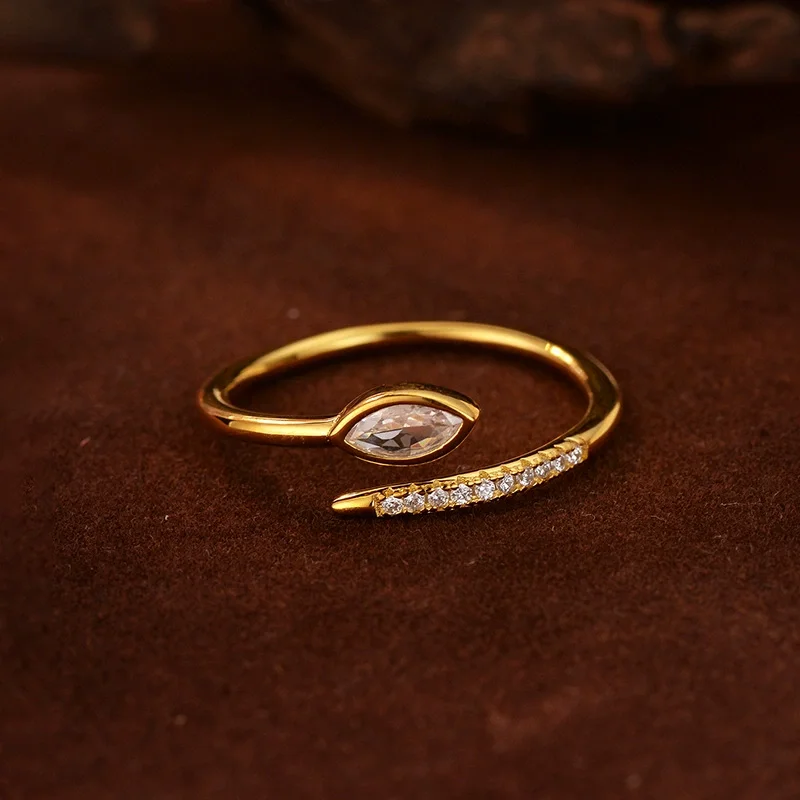 Wholesale Fashion Fine Jewelry 925 Silver Snake Ring 18K Gold Plated Cubic Zirconia Snake Shape Adjustable Ring for Women