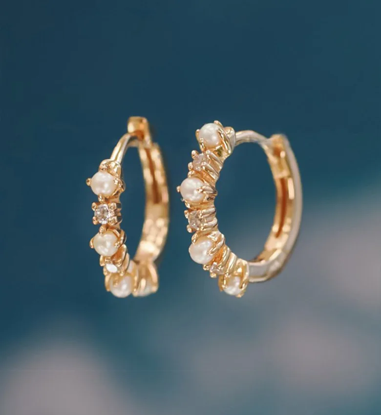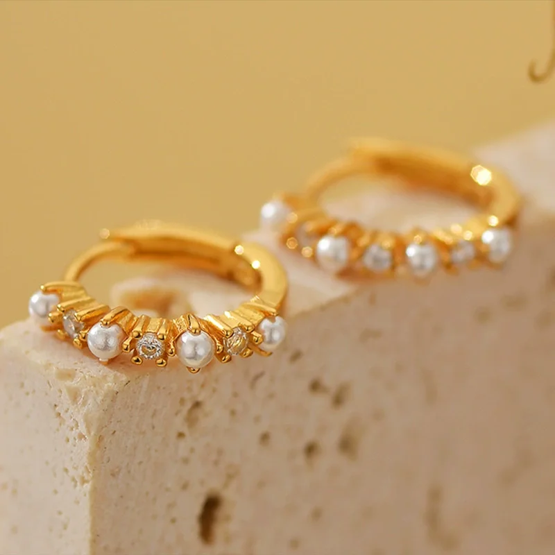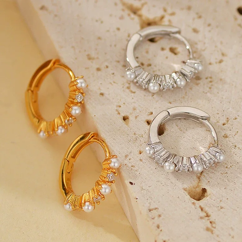 Exclusive 2025 18K Gold Plated 925 Silver Hoop Earrings With Zircon & Pearl for Women's Elegance