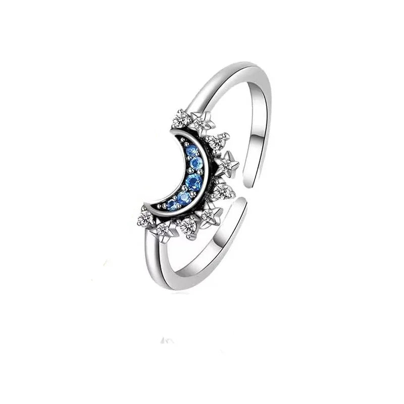 Fashionable Adjustable Gold Sun Bule Moon Glory Stacked Ring Open Rotating Zircon Couple Ring for Men Women
