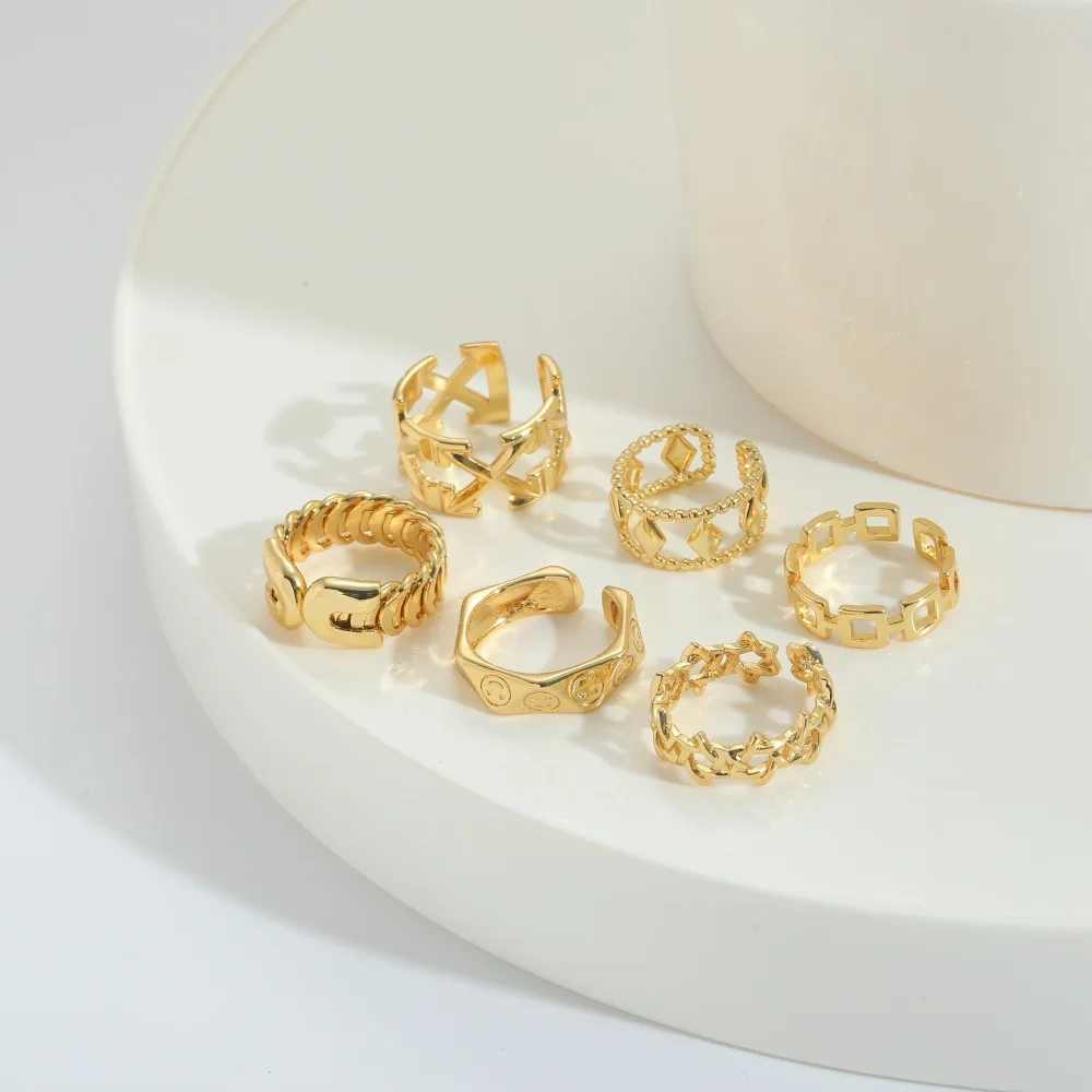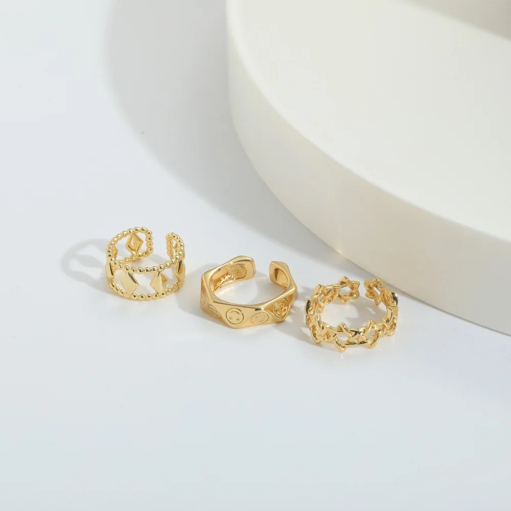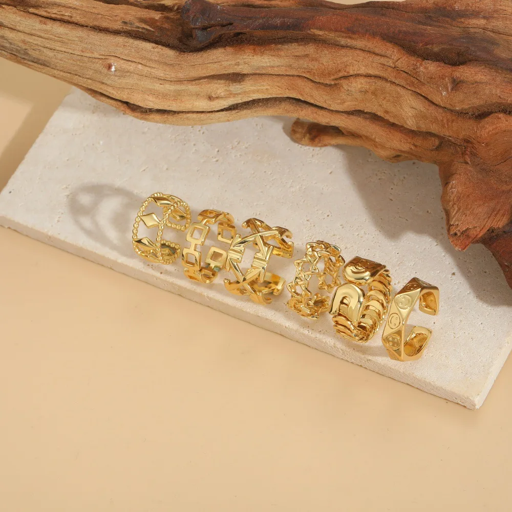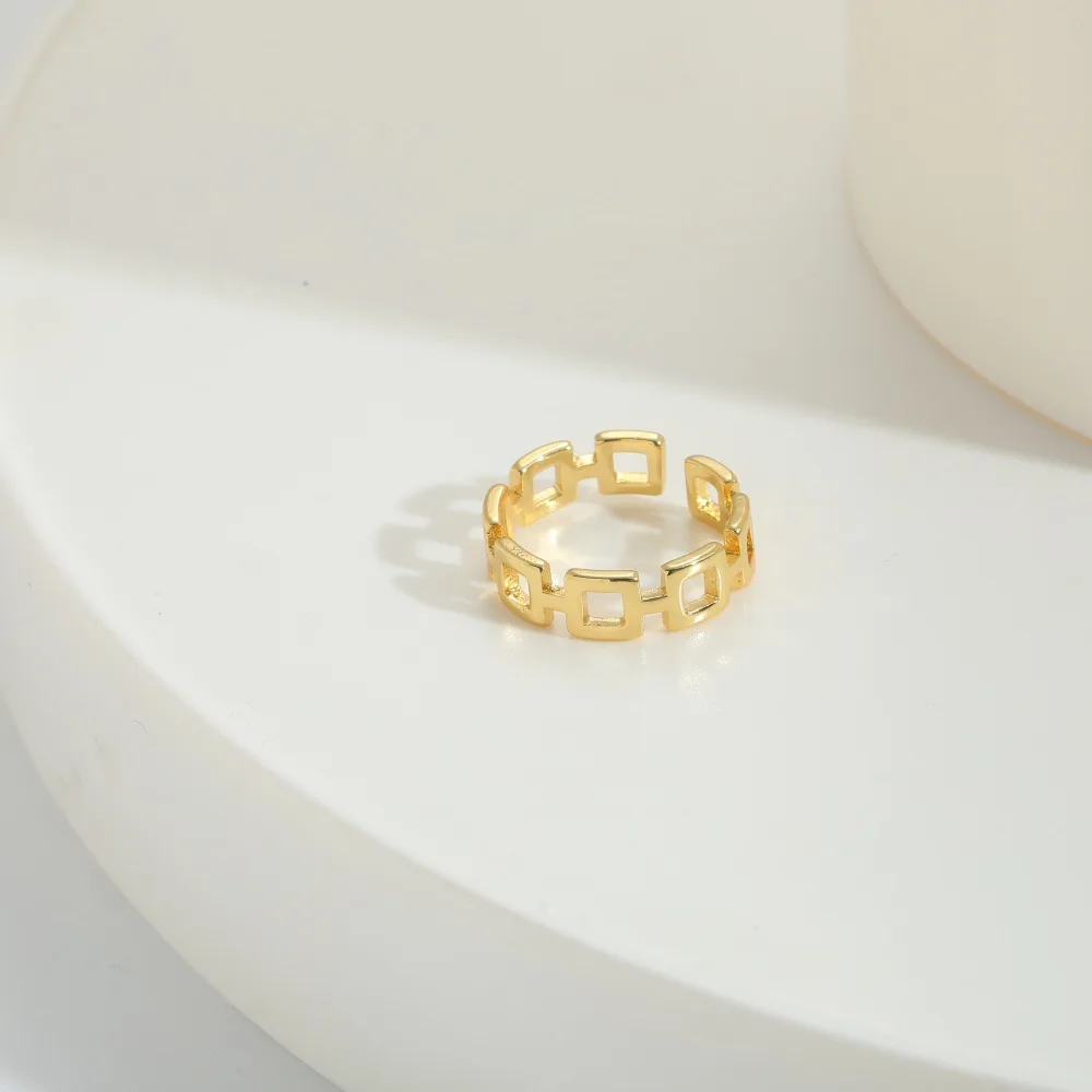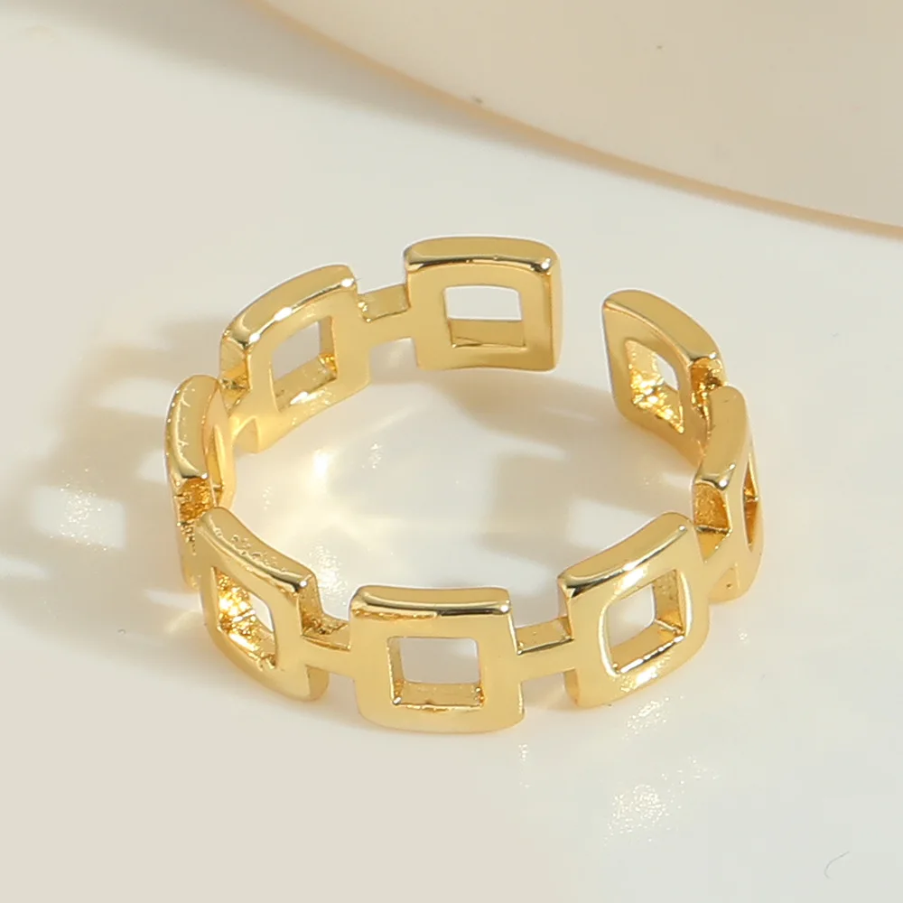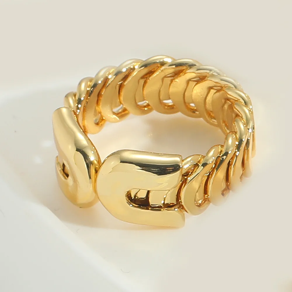 Edgy 18K Gold Plated Copper Miami Cuban Chain Punk Style Ring With Adjustable Fit for Women and Girls