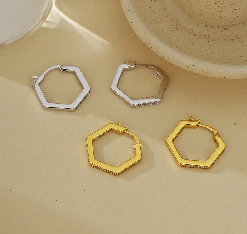 Trendy Fashion Minimalist Delicate Hexagon Hoop Earring Custom Jewelry Hot Sale Geometric Pave Hexagon Hoop Earring for Girls