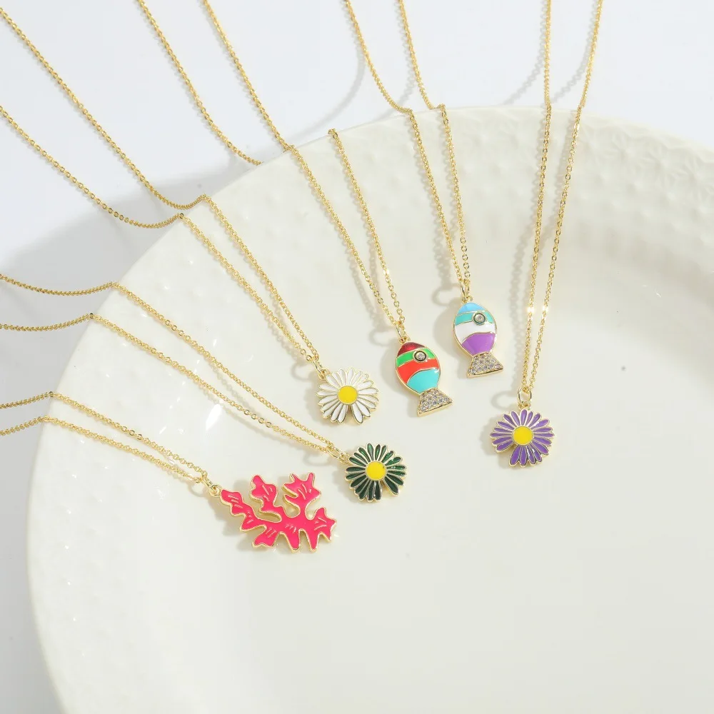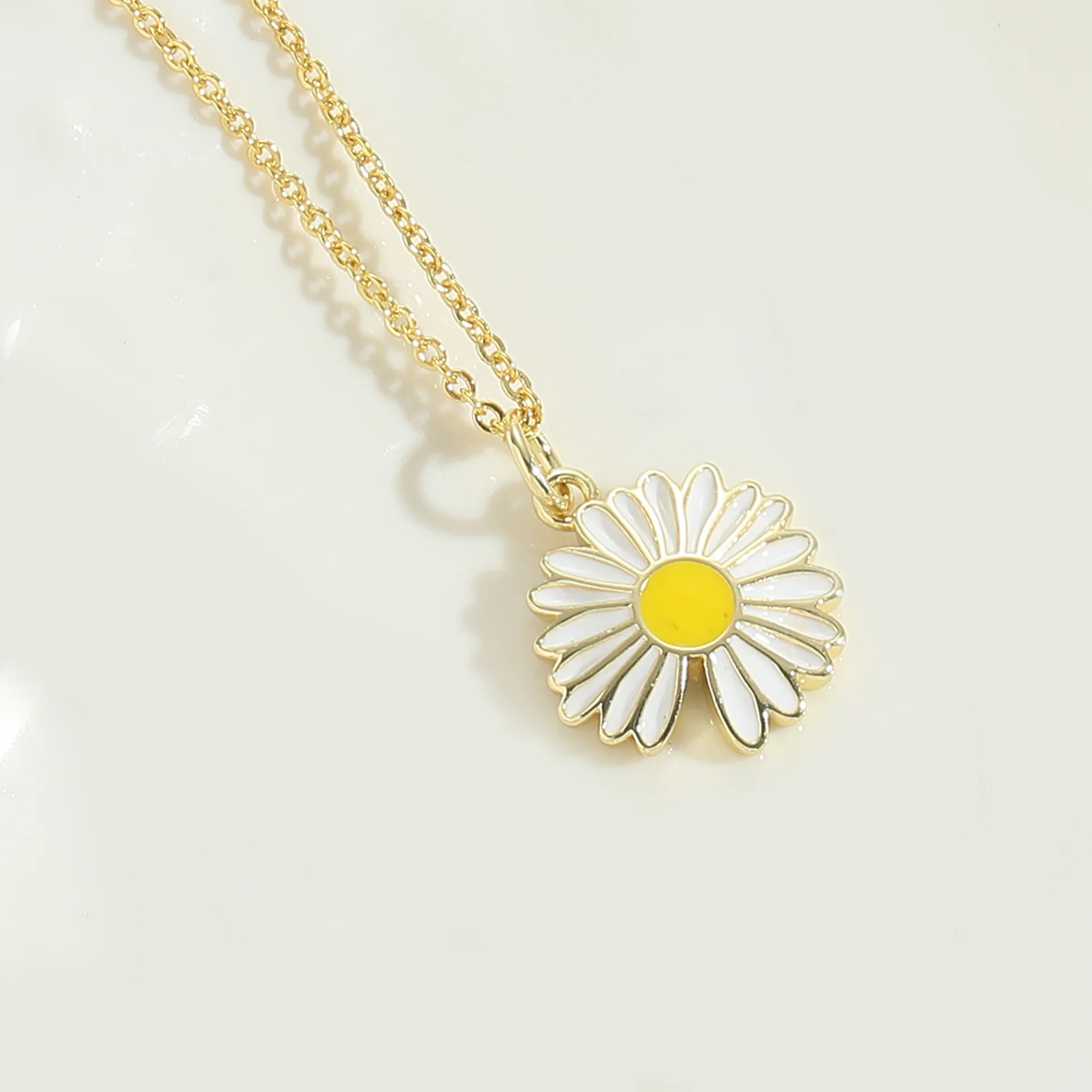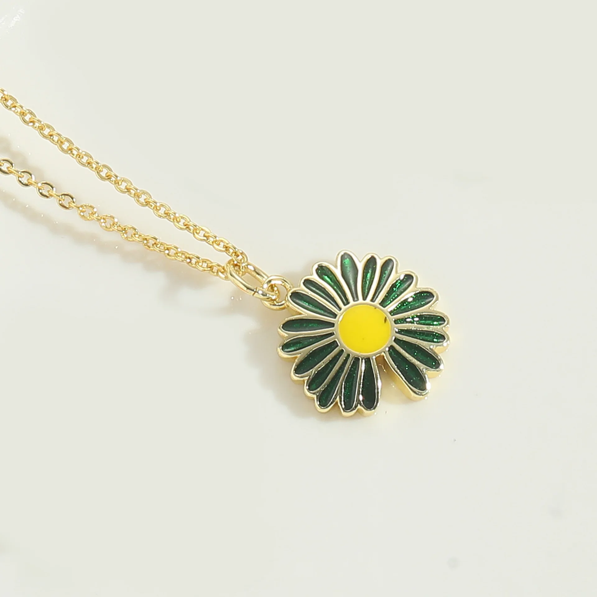 Copper Daisy Pendant Necklace Enamel Drop Adjustable Choker Jewelry Gift Box