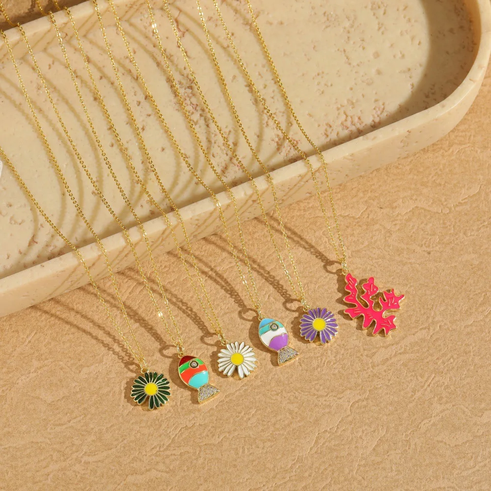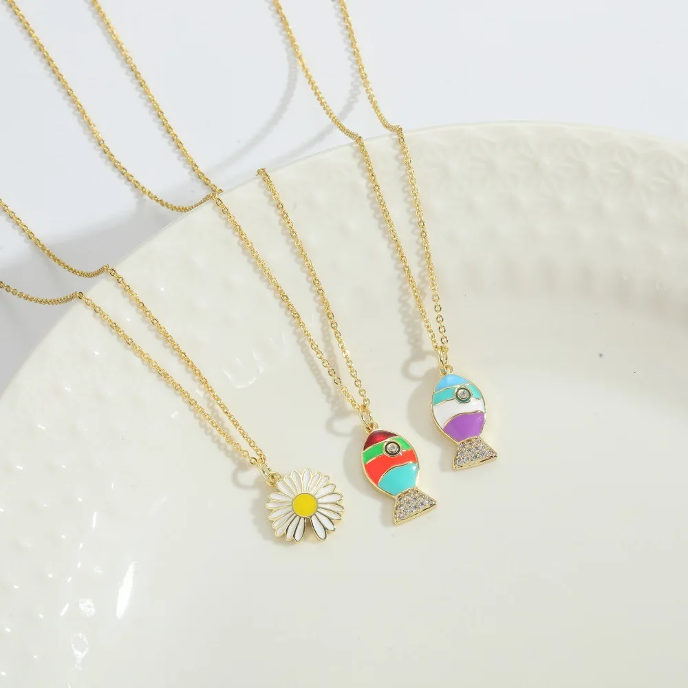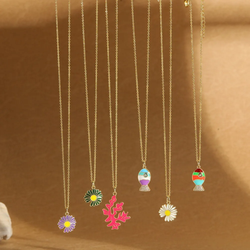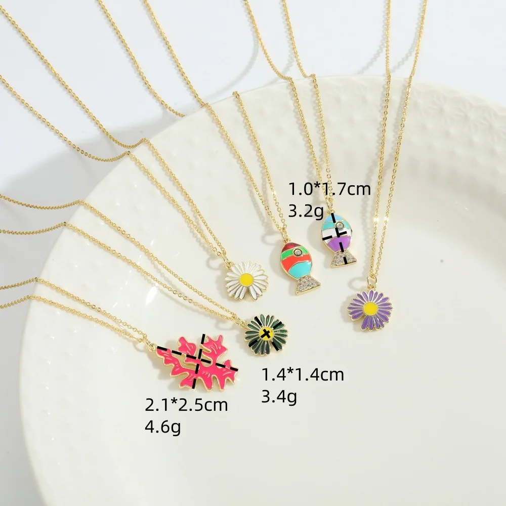 Copper Daisy Pendant Necklace Enamel Drop Adjustable Choker Jewelry Gift Box