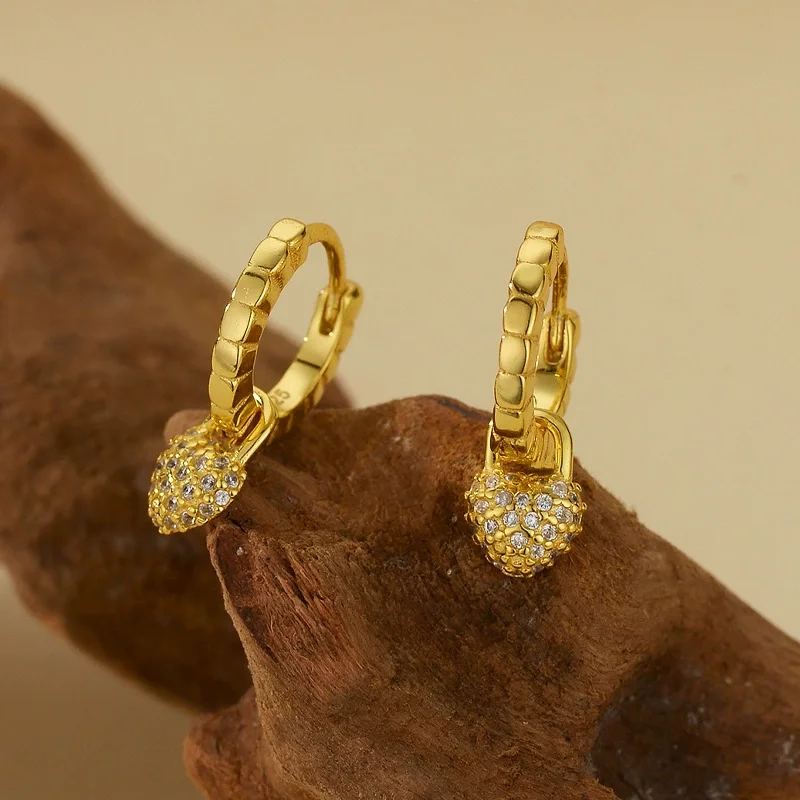 Trendy Huggie Earrings 925 Sterling Silver 18K Gold Plated CZ Heart Love Huggie Jewelry for Women Minimalist Tiny Heart Earrings