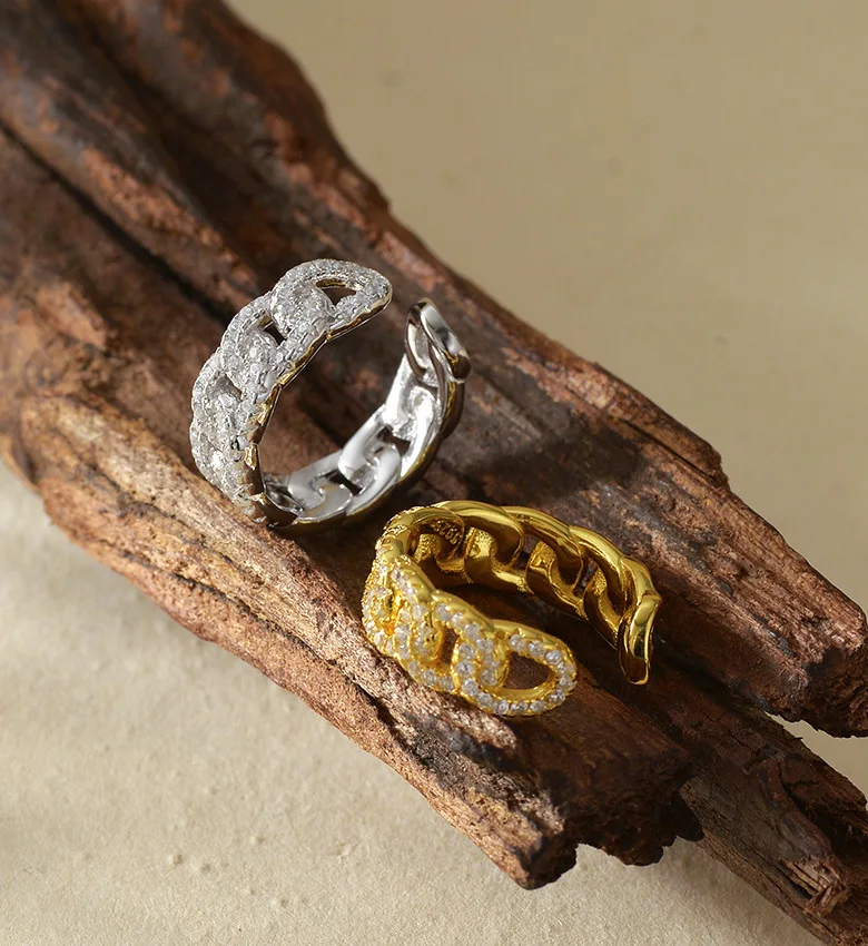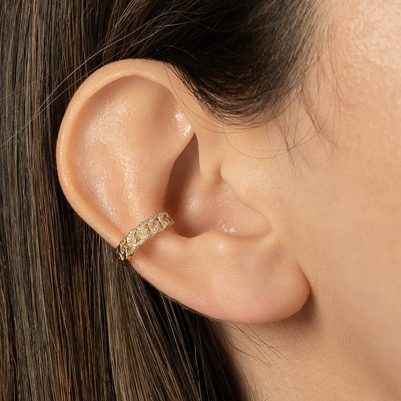Vintage 925 Real Silver Cuban Link Ear Cuff Jewelry for Men and Women Iced Out CZ Gold Plated Cuban Chain Hiphop Jewelry