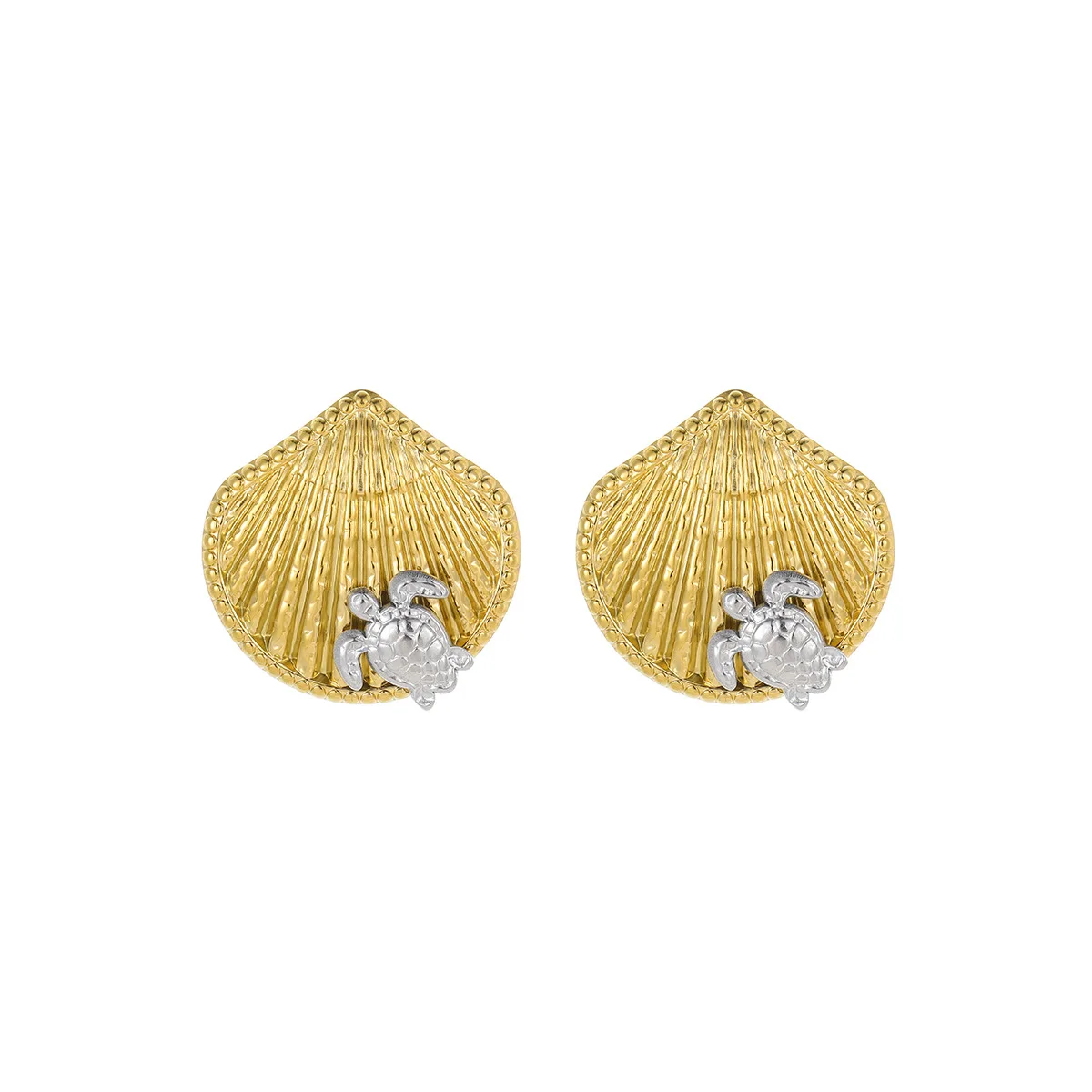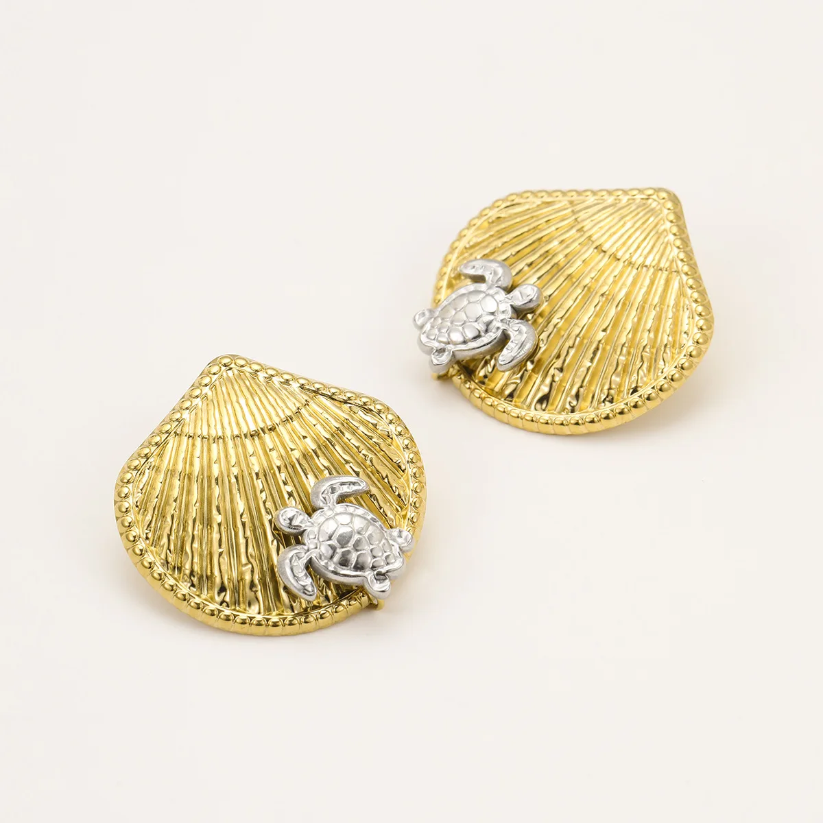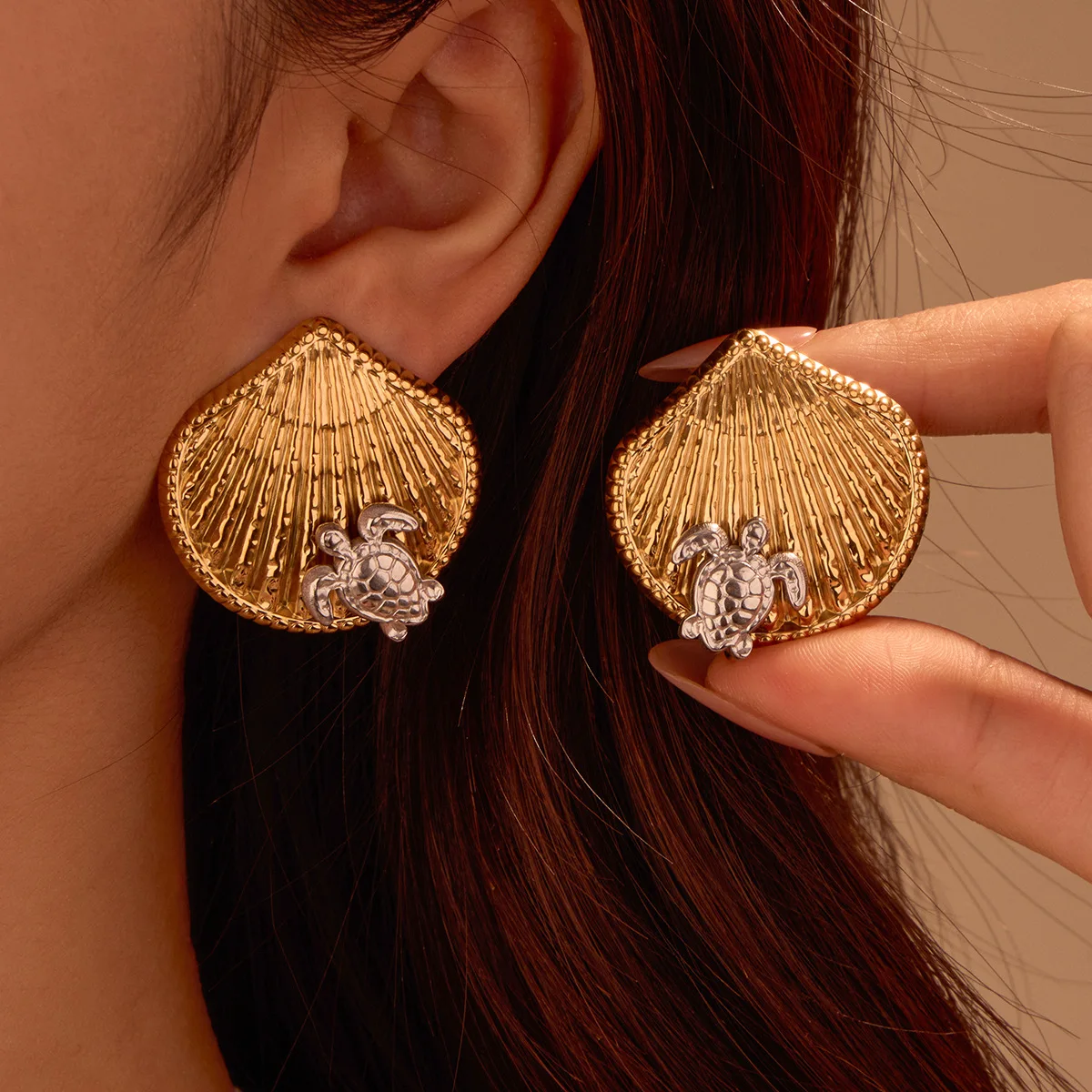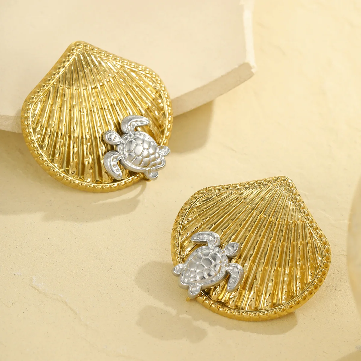 Wholesale Summer Beach Jewelry18K Gold Plated Stainless Steel Shell Sea Turtle Stud Earrings for Women Gift