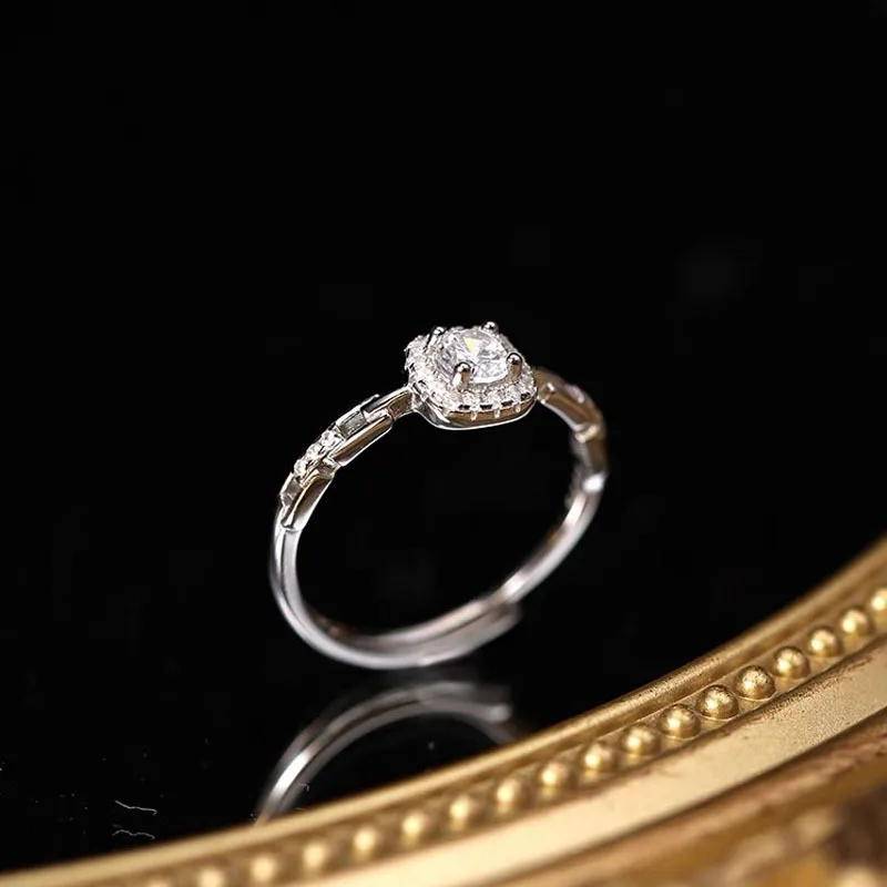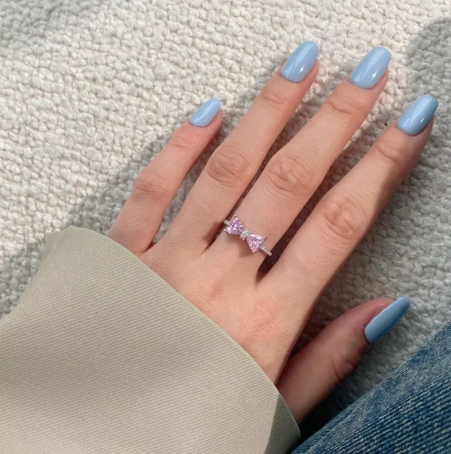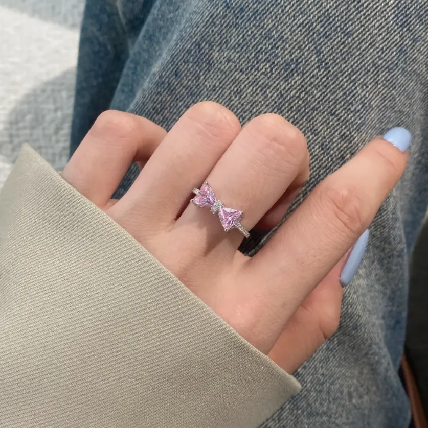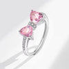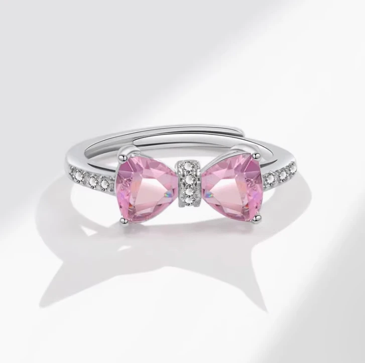 Women's 925 Silver Sparkling pink Bow Ring Zirconia Open Adjustable Matching Rings Friendship Rings Gifts