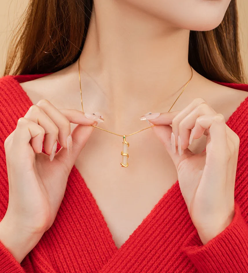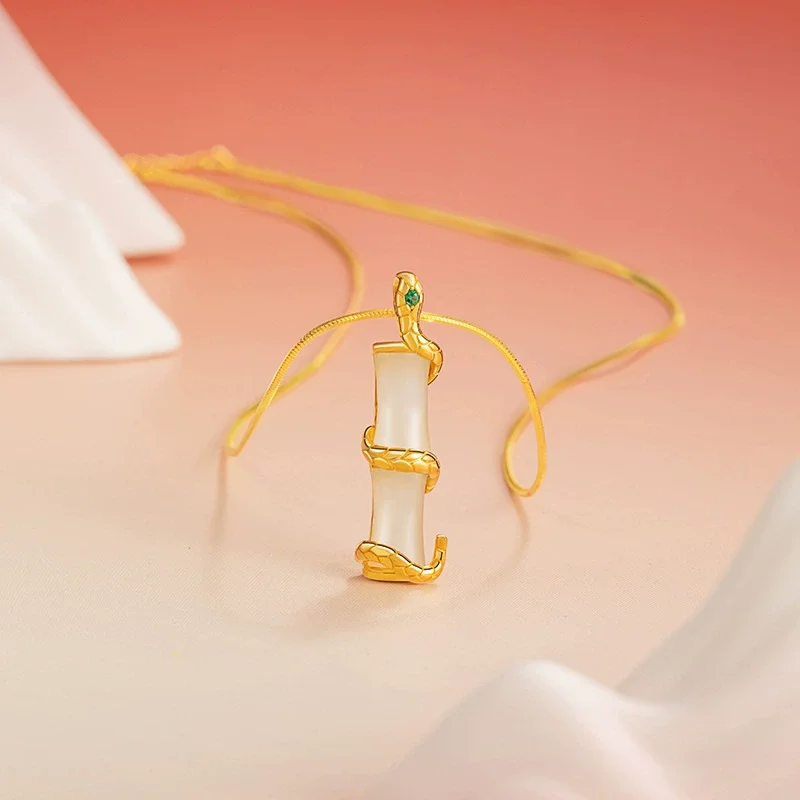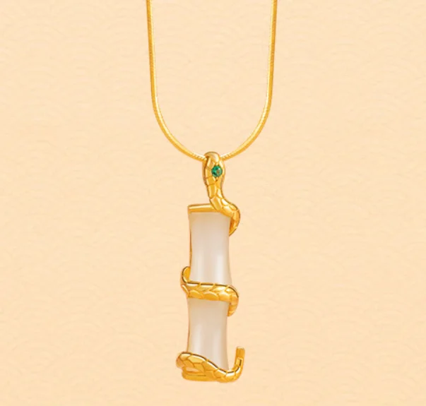 High Quality Bamboo Jade Necklace With Gold Snake Chinese Style Jade Bamboo Serpent Snake Necklace for Women