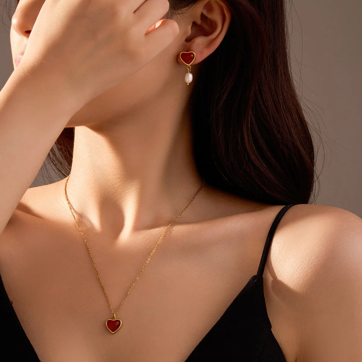 Valentines Day Teen Girl Gifts Stainless Steel Heart Pendant Necklace Earrings Cute Gold Plated Fashion Jewelry Jewelry Sets