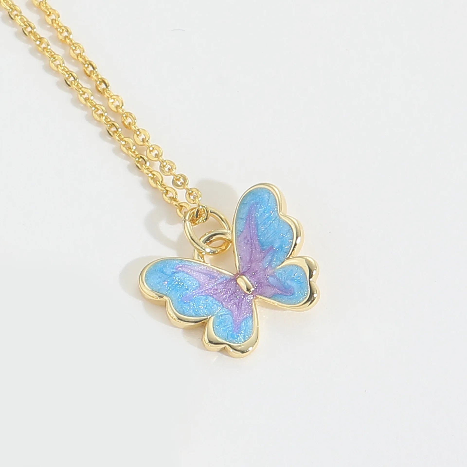 Copper Elegant Gradient Butterfly Enamel Necklace for Women Perfect for Special Occasions and Everyday Wear