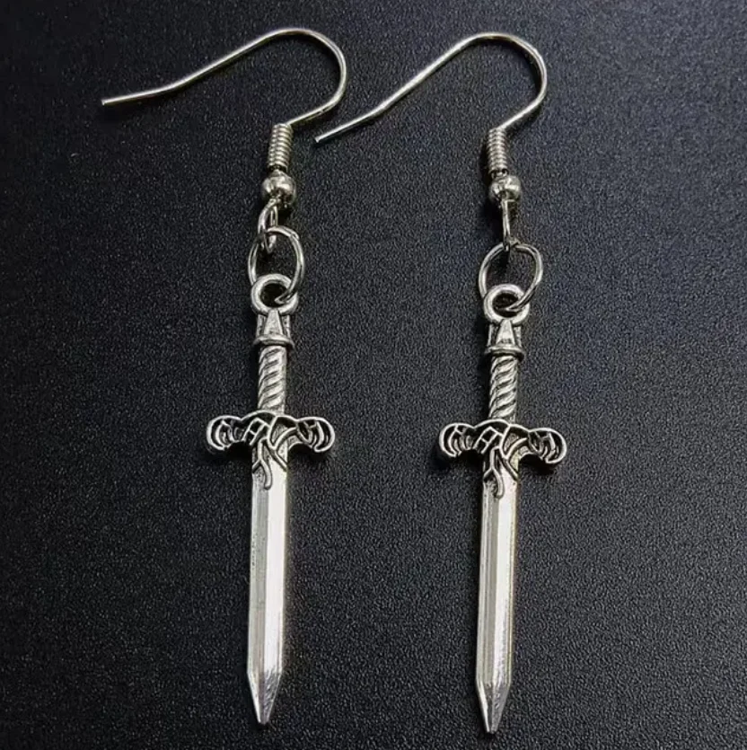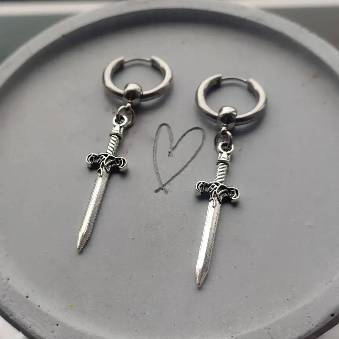 Gothic Jewelry Warrior Silver Sword Earrings Sets for Unisex Retro Hip Hop Dagger Hoop Earrings Women Men