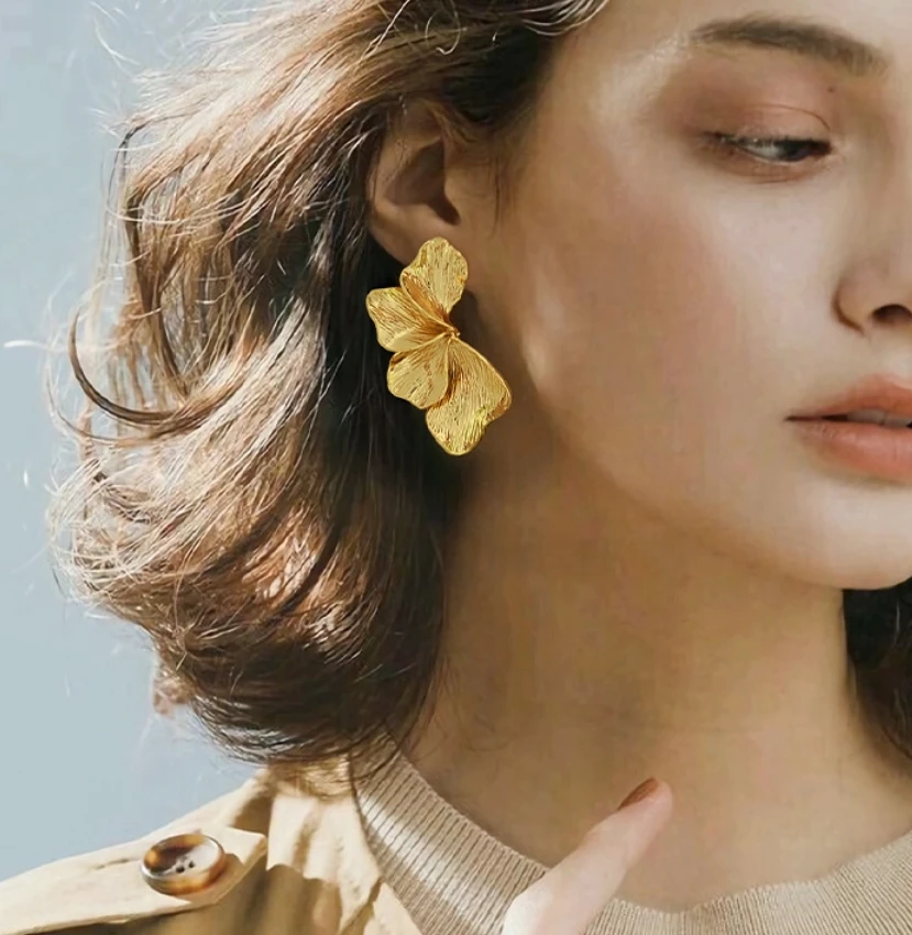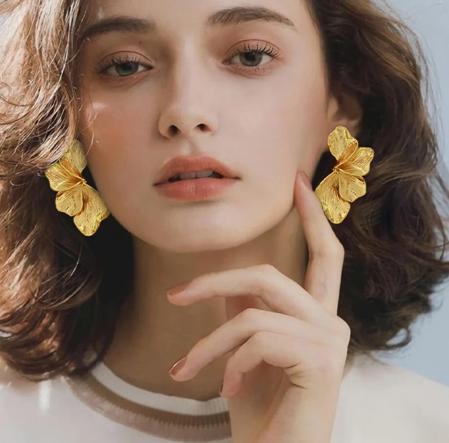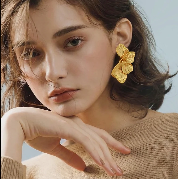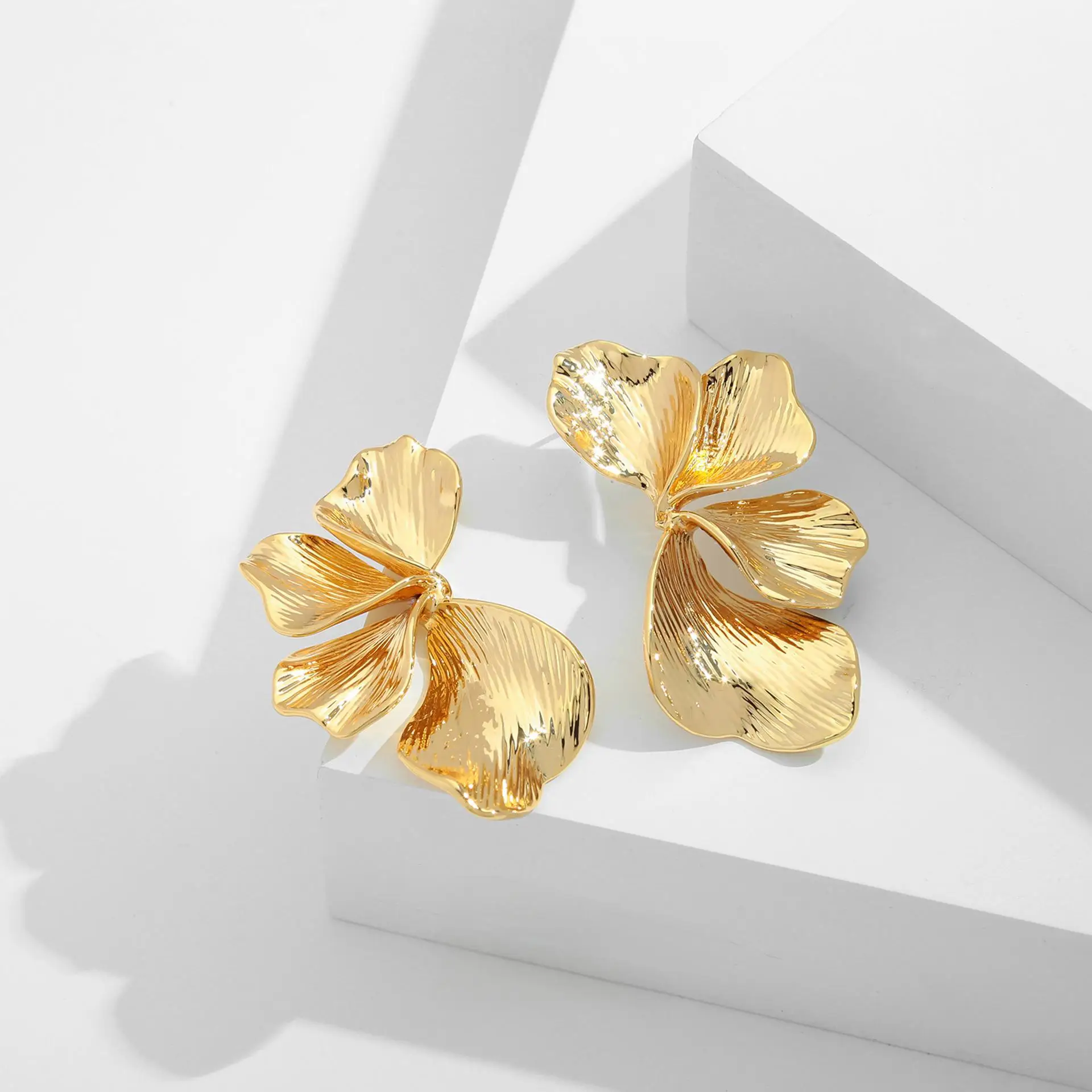 High Quality Gold Big Flower Drop Dangle Earring Women Exaggerated Metal Floral Party Statement Earrings for Valentines Day Gift