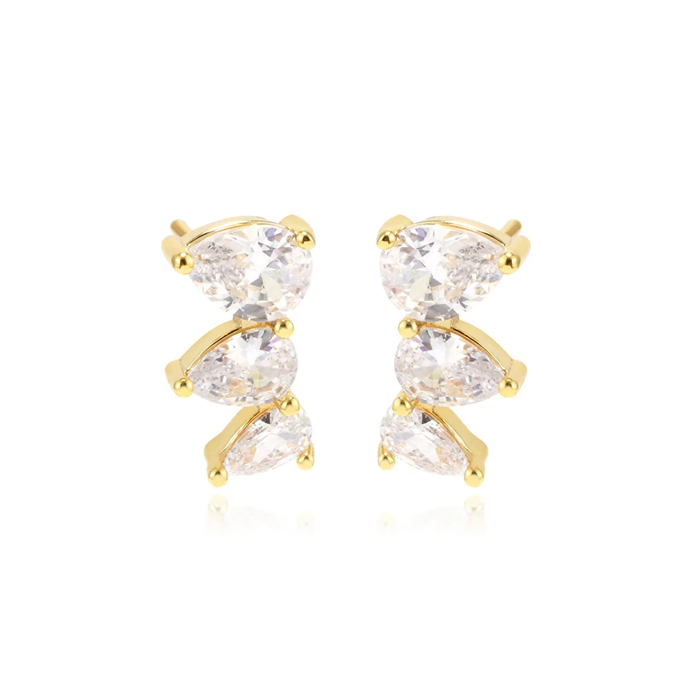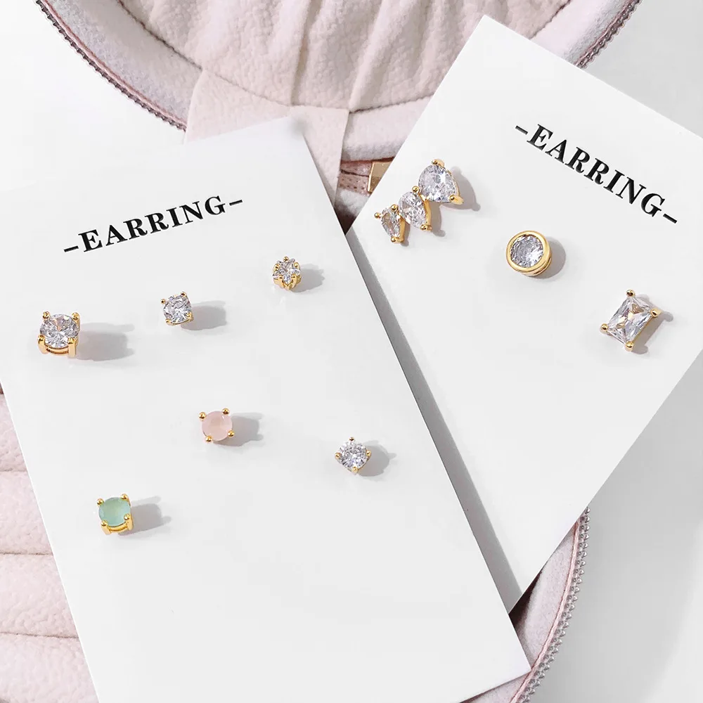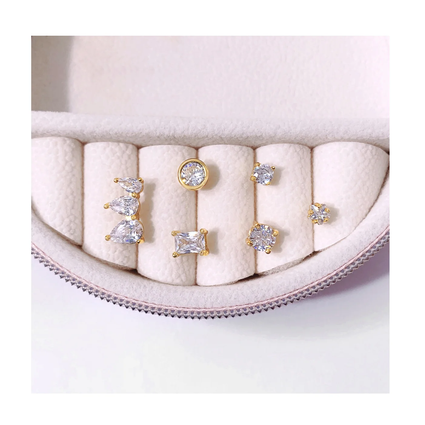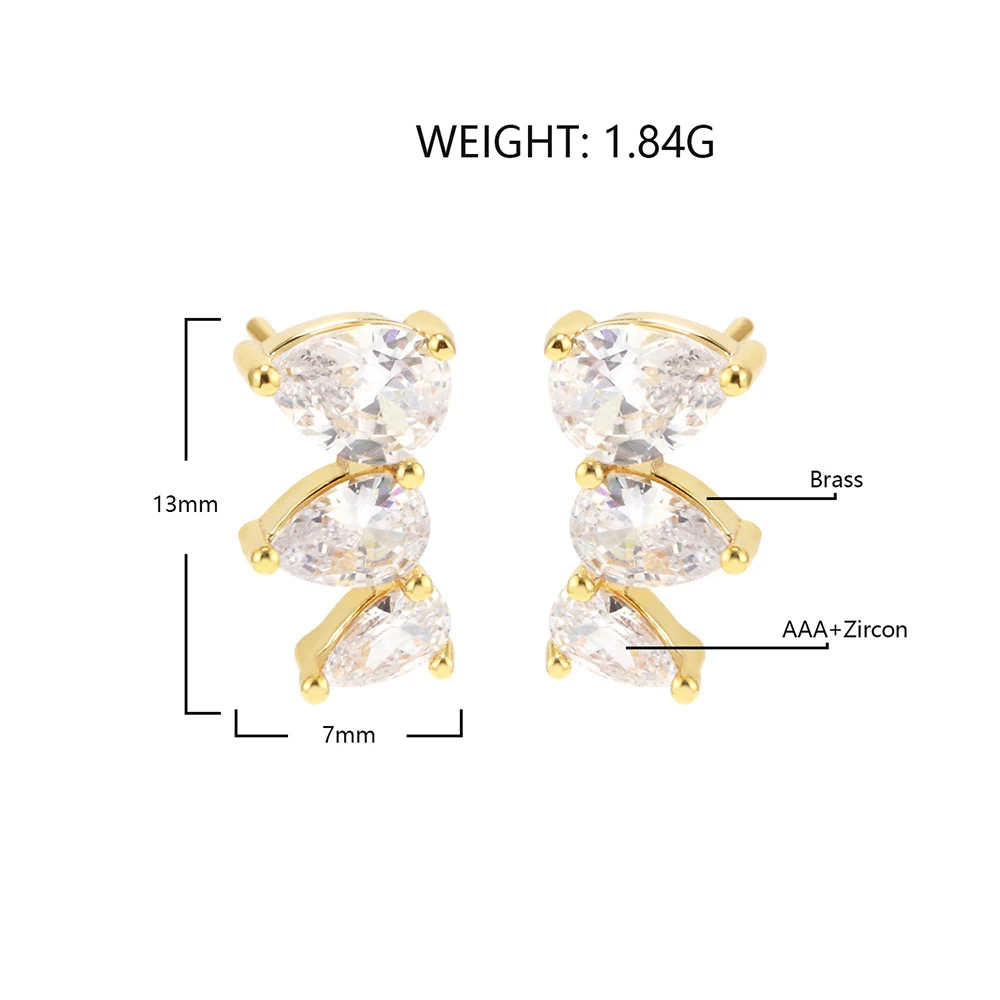 Classic Design Silver Bezel Set Zircon Stud Earrings Water Drop Vintage Style Jewelry Accessories for Wome