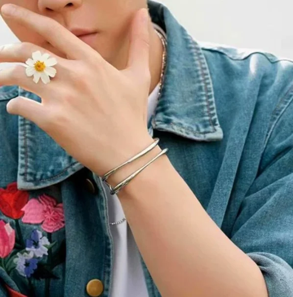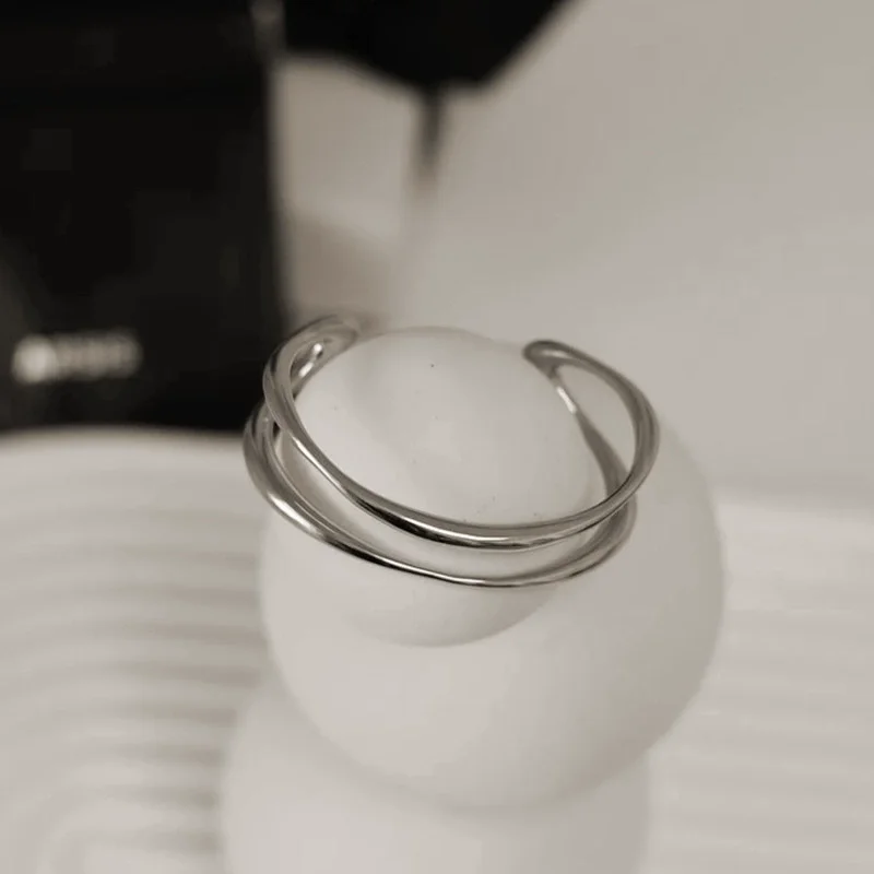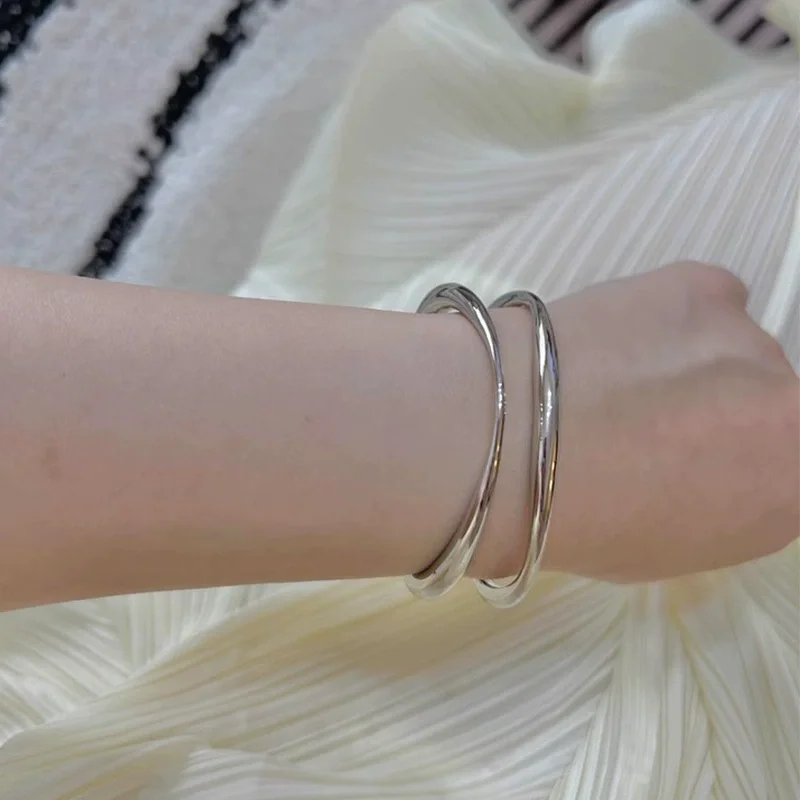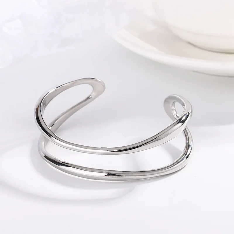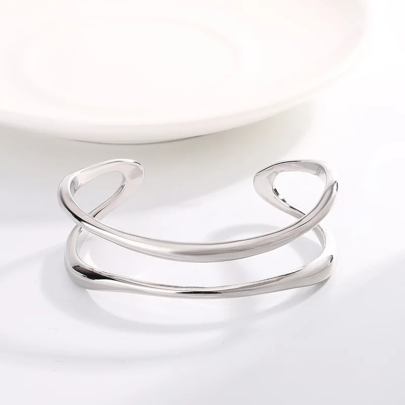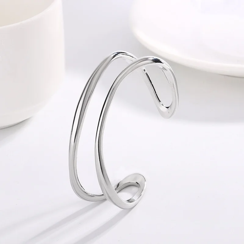 Fashionable Silver Irregular Streamline Double Layer Bracelet Simple Temperament Daily Open Cuff Bracelet for Women