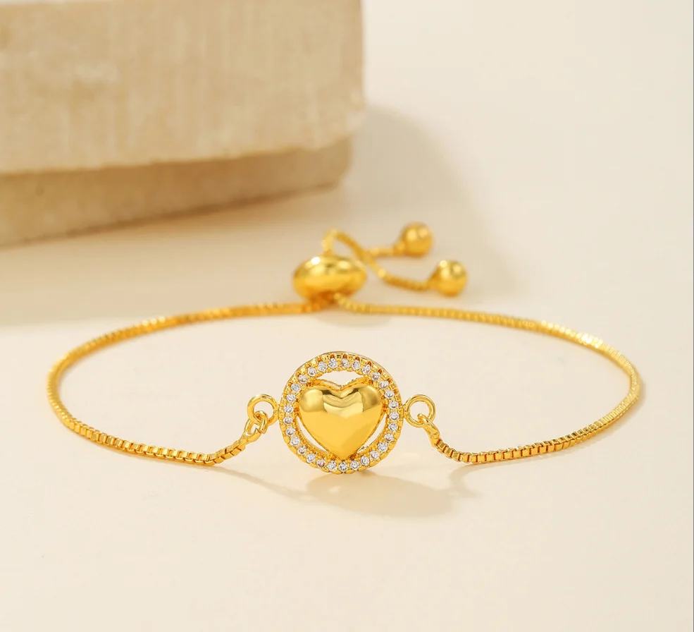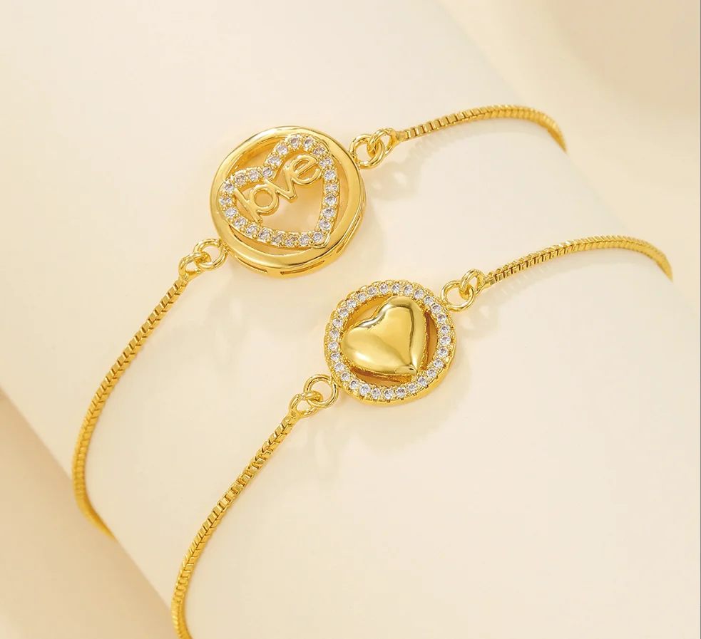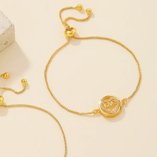 Wholesale Personal Gift Gold Plated Heart Shape Stainless Steel Bangle Bracelet Pull Out Cubic Zircon LOVE Couple Bracelet