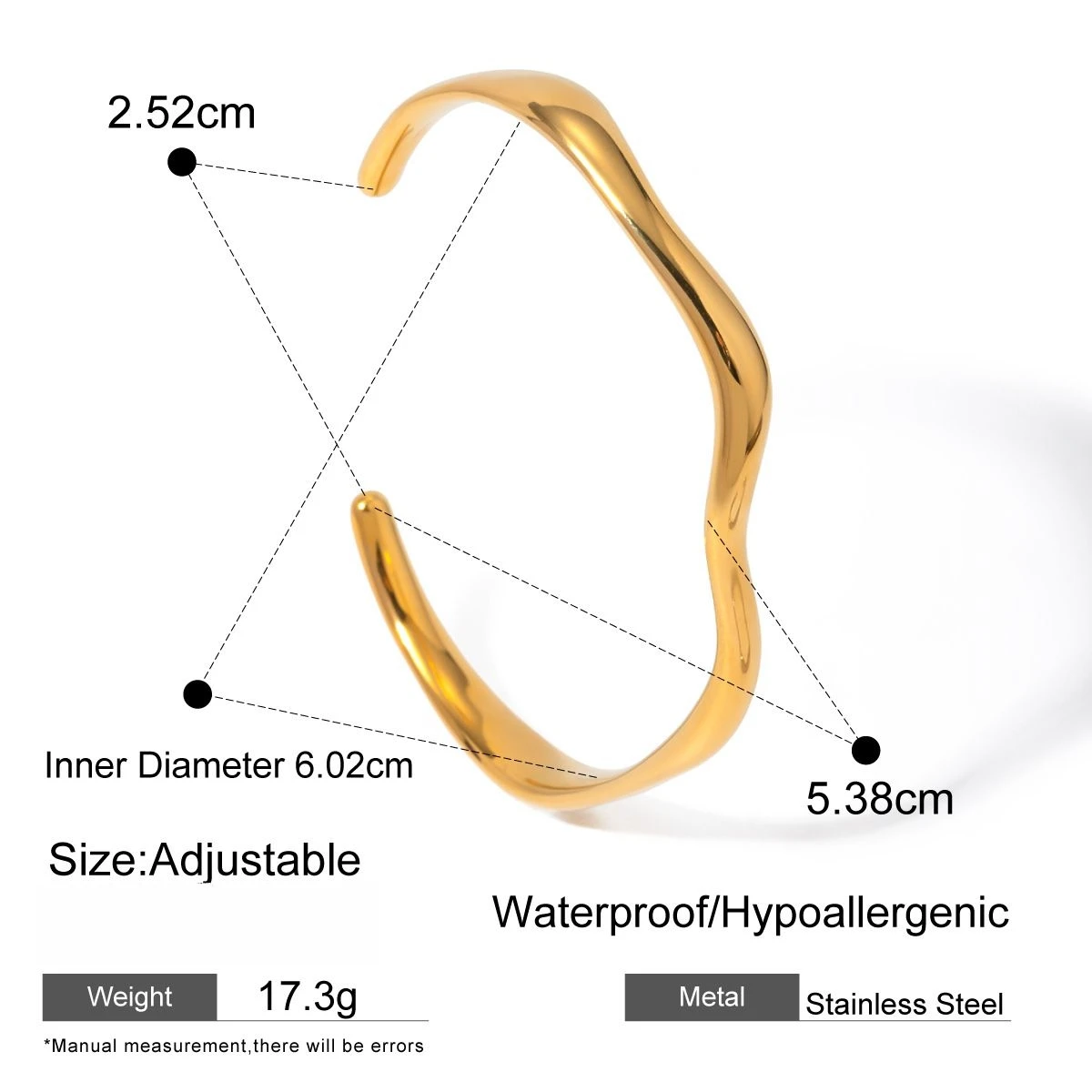Non-Tarnish Stainless Steel Gold Plated Wave Bangle Bracelet for Women Minimalist Open Cuff Bracelet Jewelry
