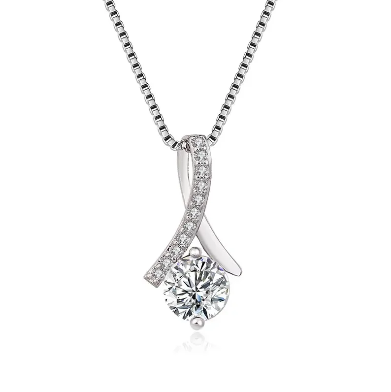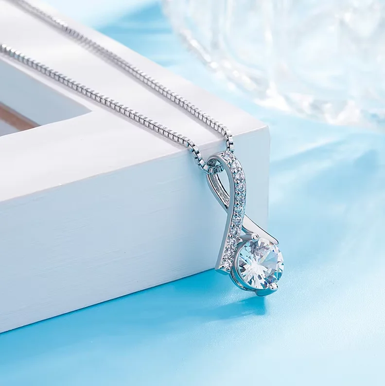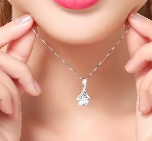 Fashion Hot Sale Sparkling Mermaid Tail Cut White Zircon Necklace Ladies Round Herringbone Chain Link Pendant Necklace