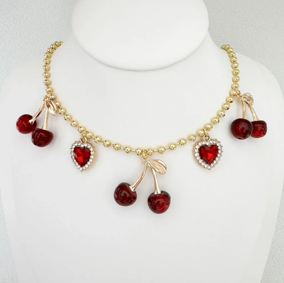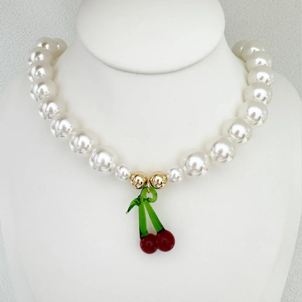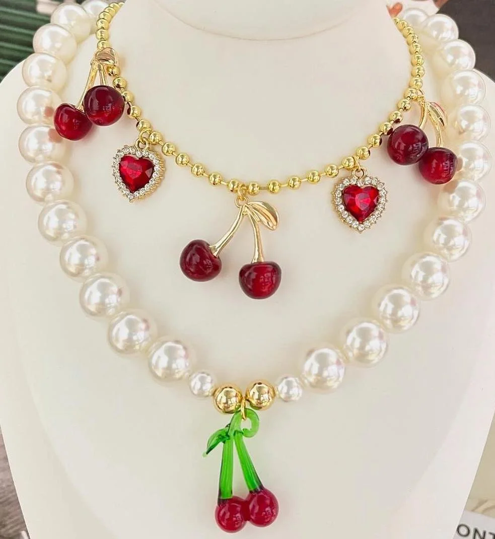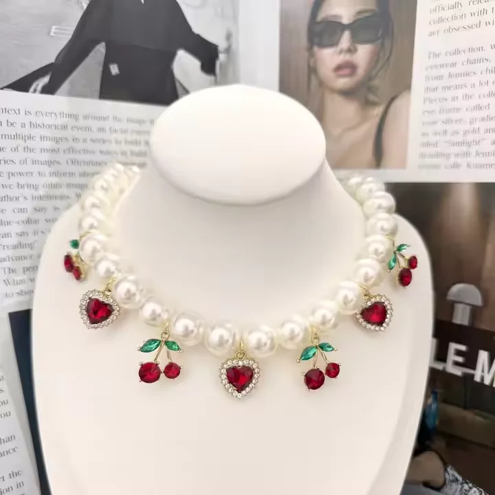 Fashion Jewelry Cherry Pearl Necklace Trendy Fruit Pearl Cherry Necklace Gold Plated Chains Necklaces Fruit Jewelry