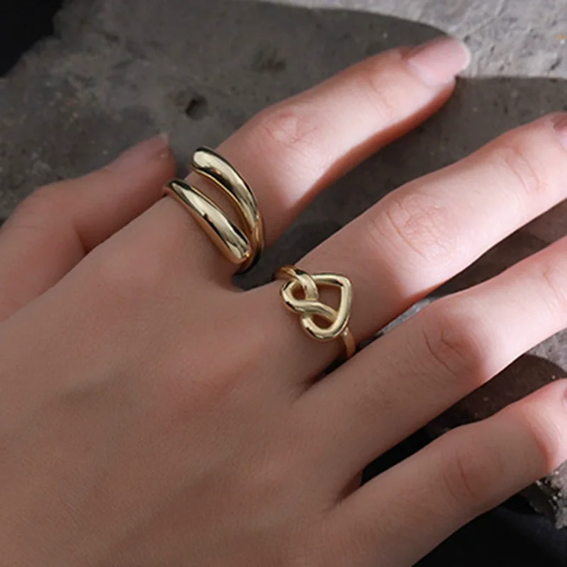Wholesale Fashion 925 Sterling Silver Fine 18K Gold Plated Rings Minimalist Adjustable Heart Ring For Women Gift