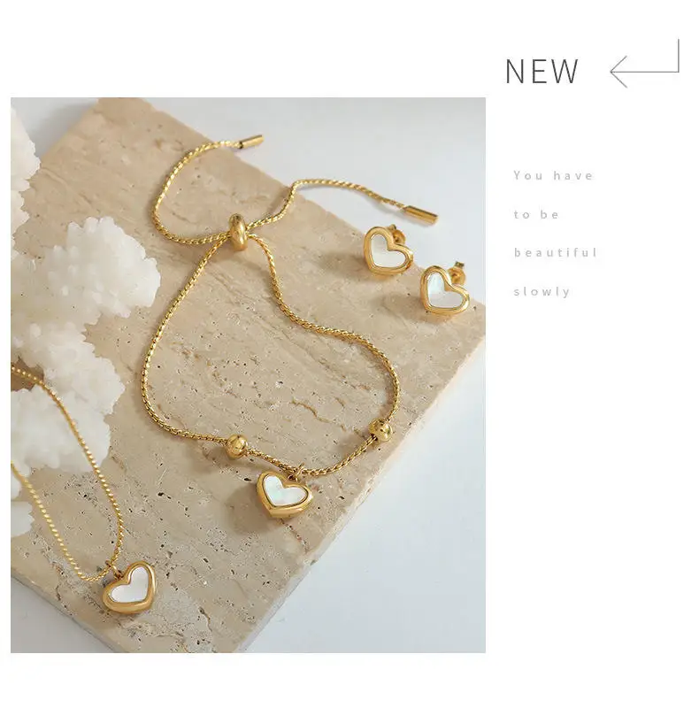 Valentines Day Gift 2025 Fashion Jewelry Sets White Sea Shell Heart Fashion Earing Bracelets Necklace Jewelry for Women