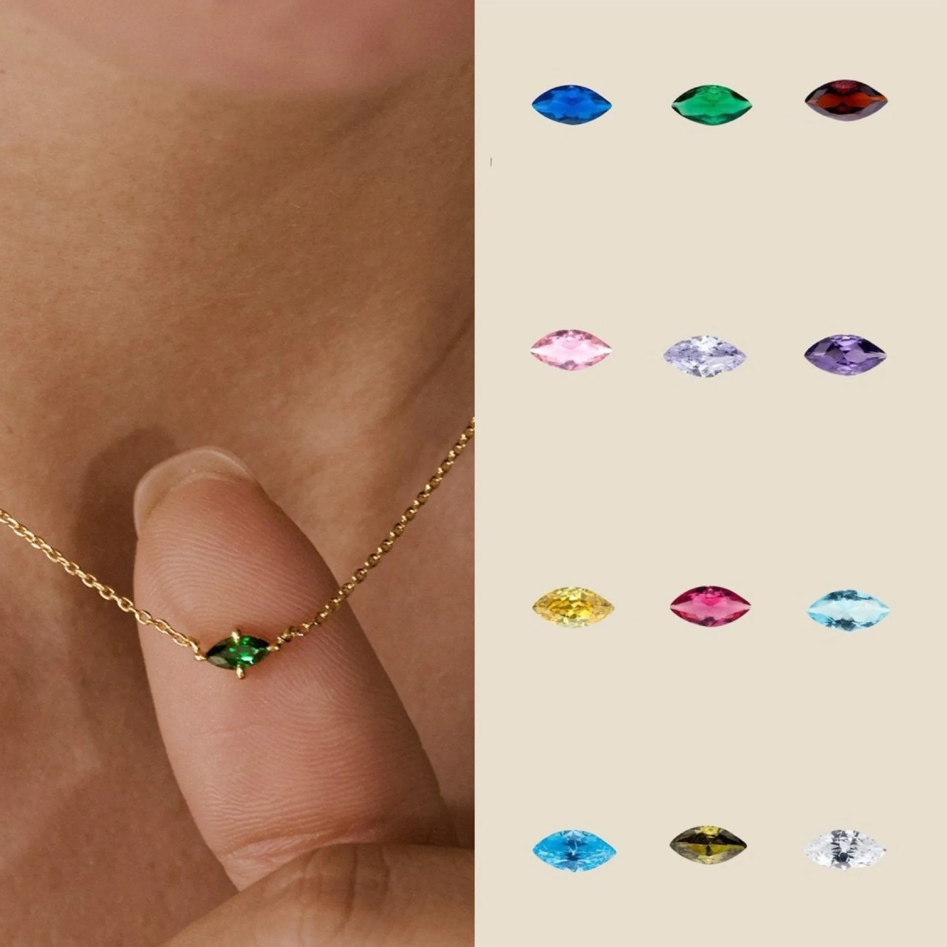 Hot Sale Simple Colorful Birthstone Necklace 18K Gold Plated Vintage Plain Circle Women's Necklaces for Gifts