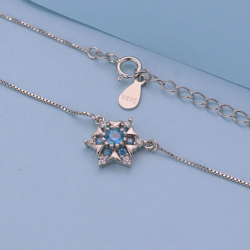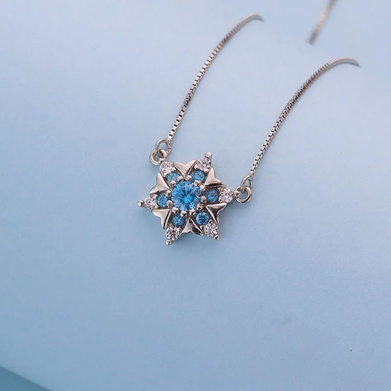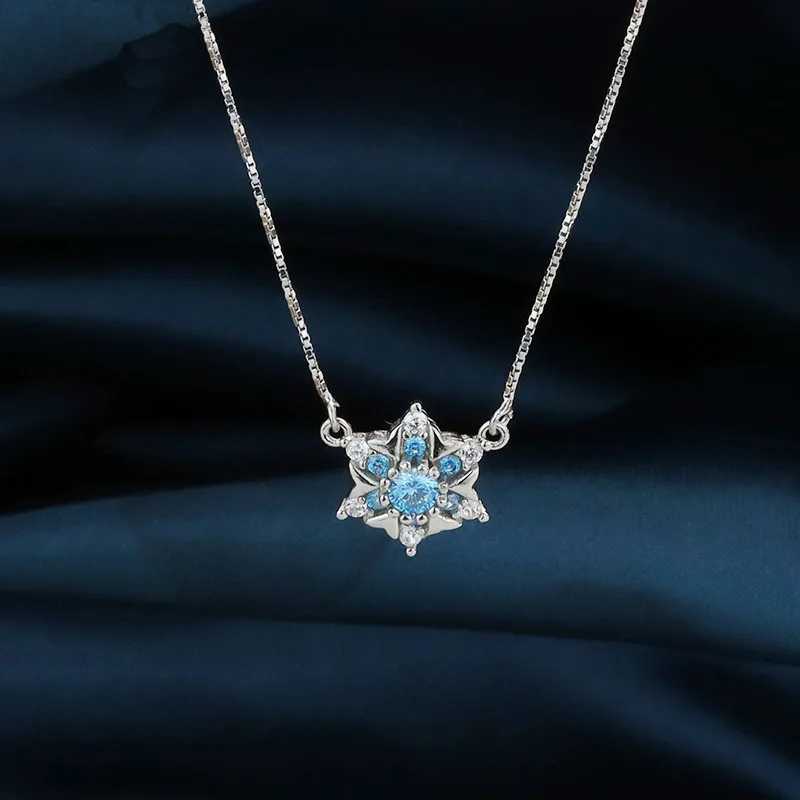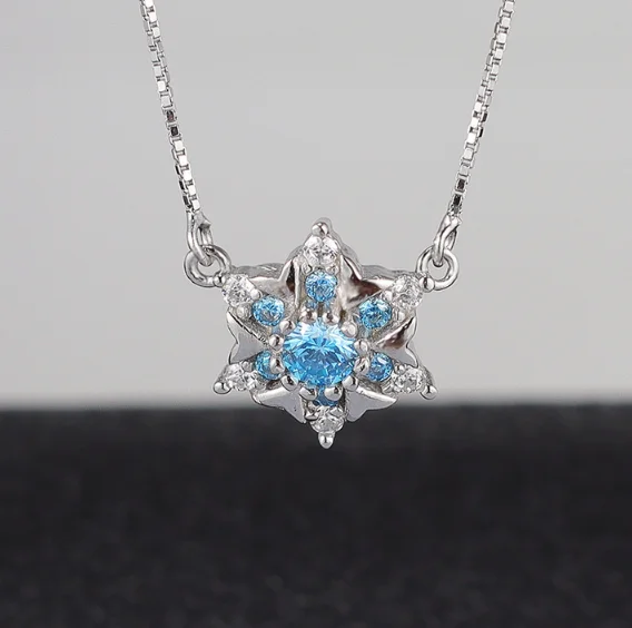 New 925 Sterling Silver Snowflake Pendant Charms Blue Zircon Stone Women Necklace Crystal Pendant Choker Jewelry