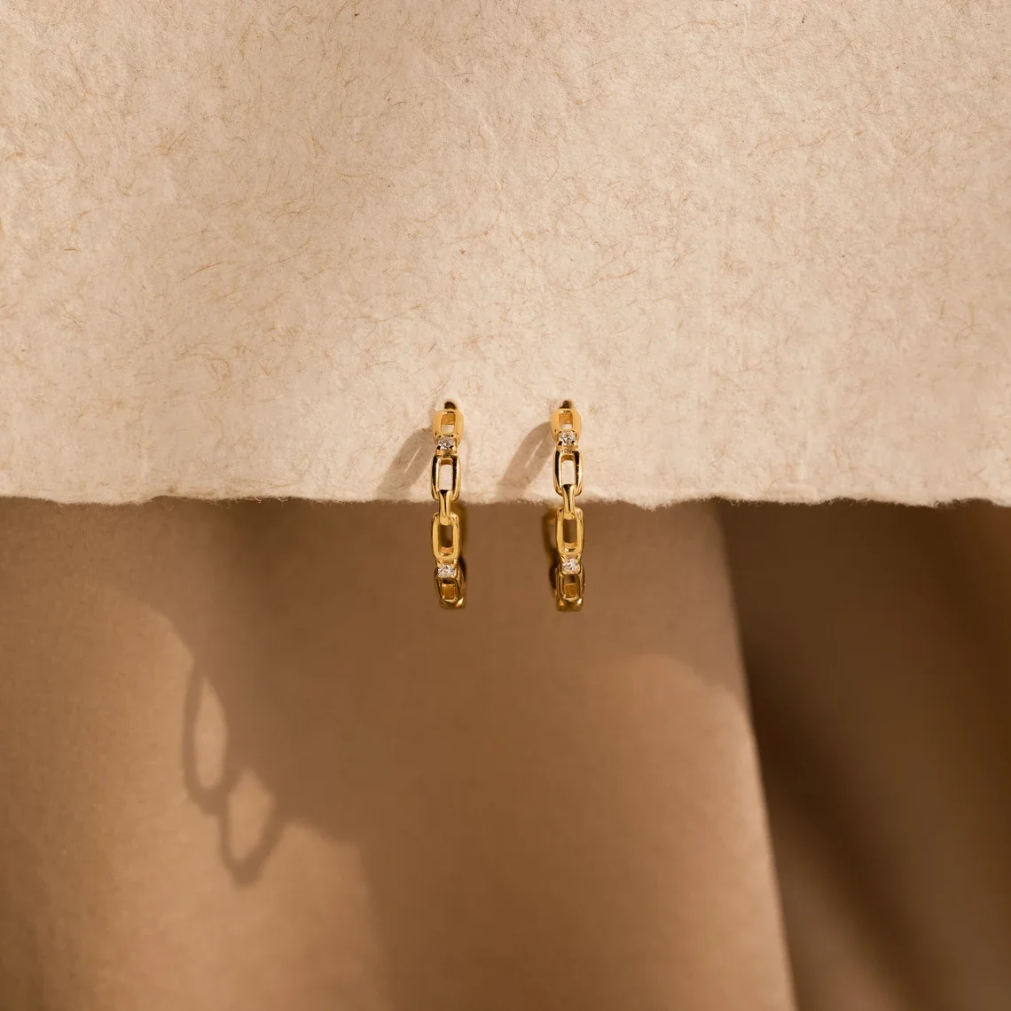 Trendy Women's Cubic Zircon Link Hoop Earrings Minimalist Gold Chain Hoop Earrings Jewelry for Everyday Wear