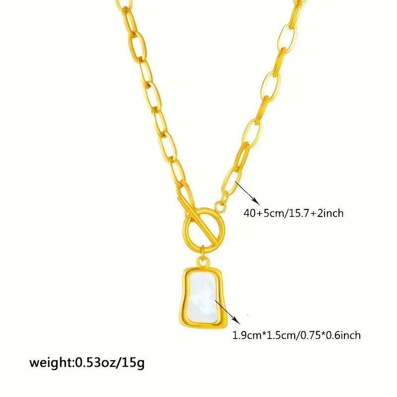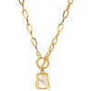 Edelstahl Schmuck 18k Gold Plated Pendant Necklace Fashion Geometric Trapezoidal Pearl Chain Necklace for Woman