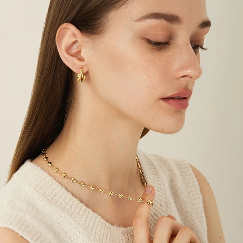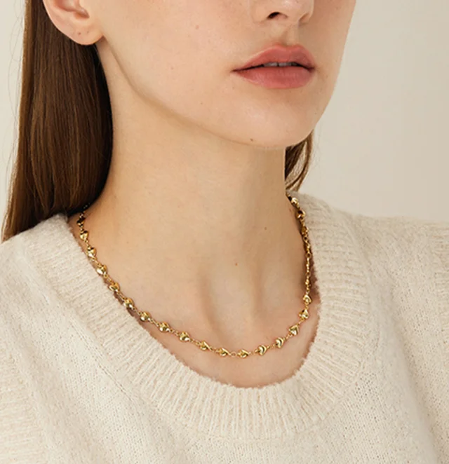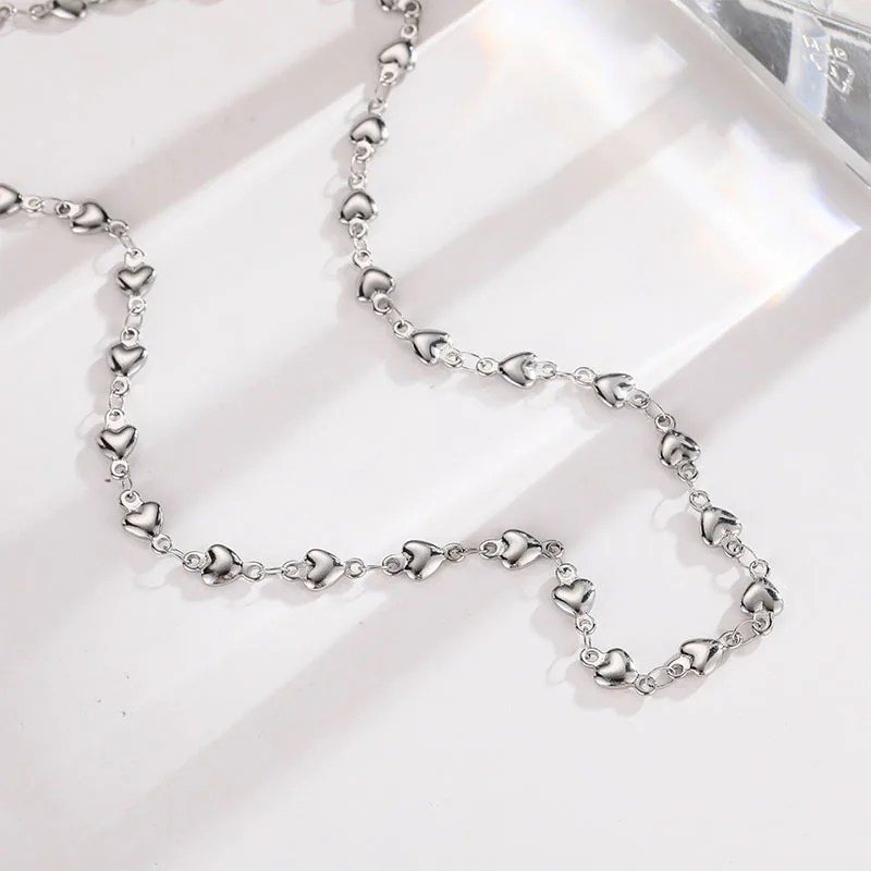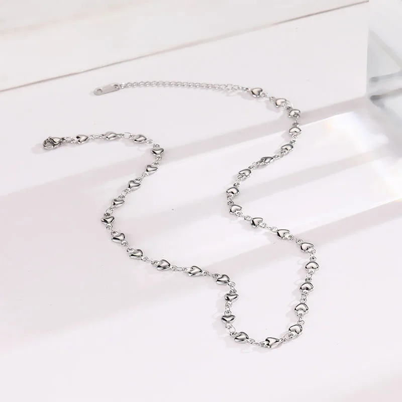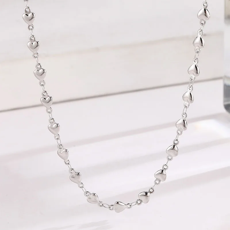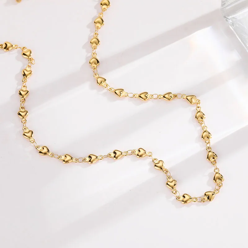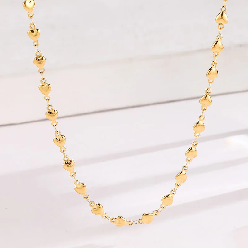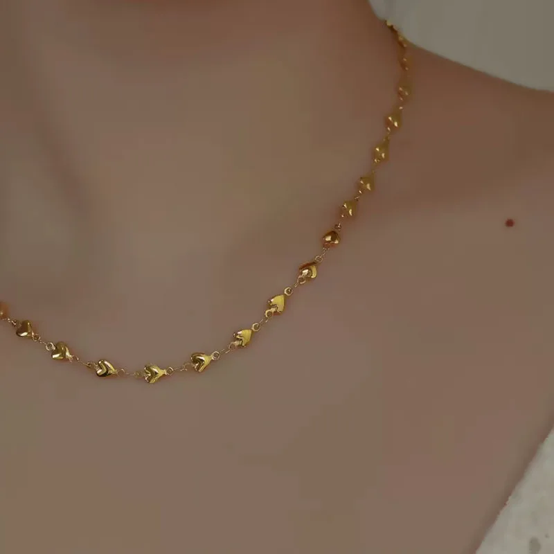 High Quality Fashion Discreet Small Heart Women's Stainless Necklace Heart Shaped Gold Beads Collarbone Chain