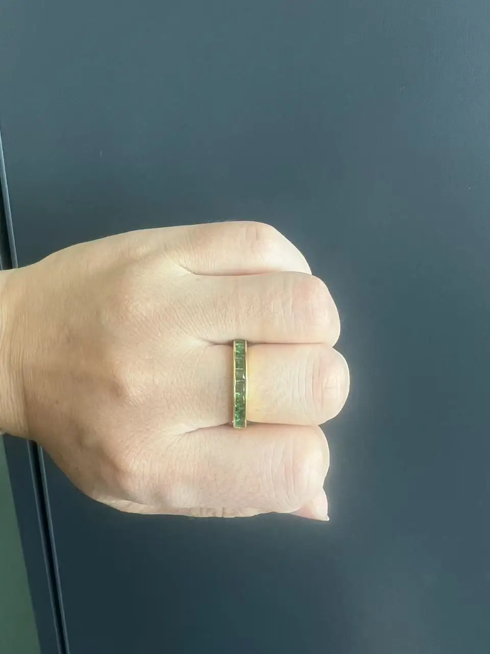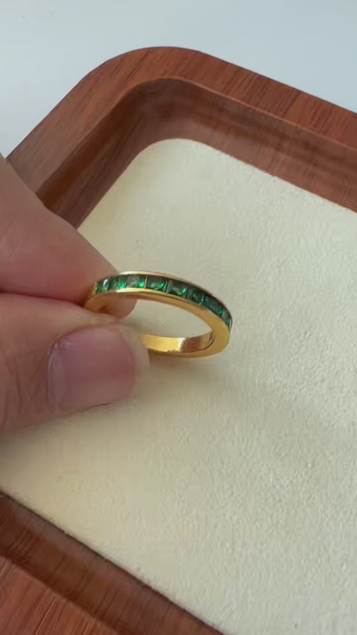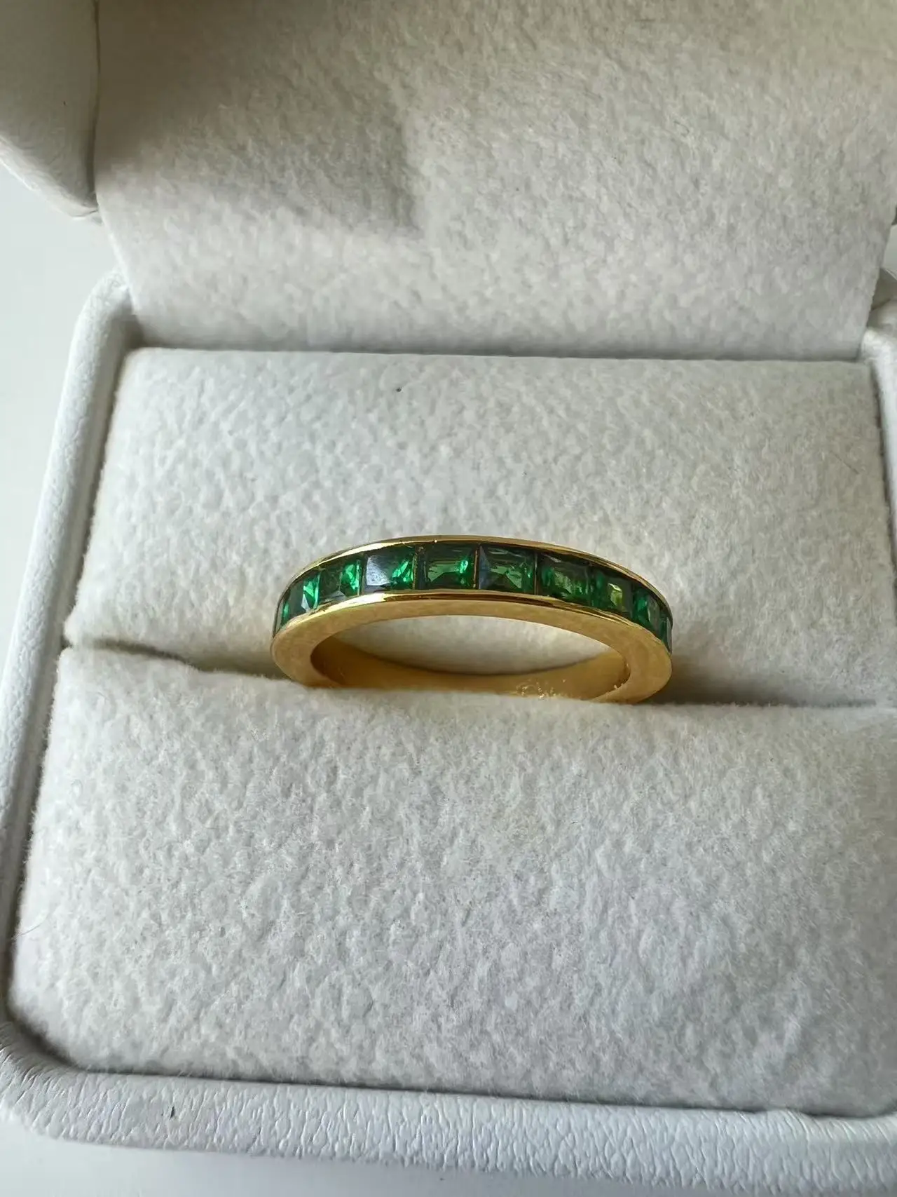 Minimalism 18k Gold Plated Stainless Steel Ring Square Green Zircon Ring Non Fading Waterproof Jewellery for Women