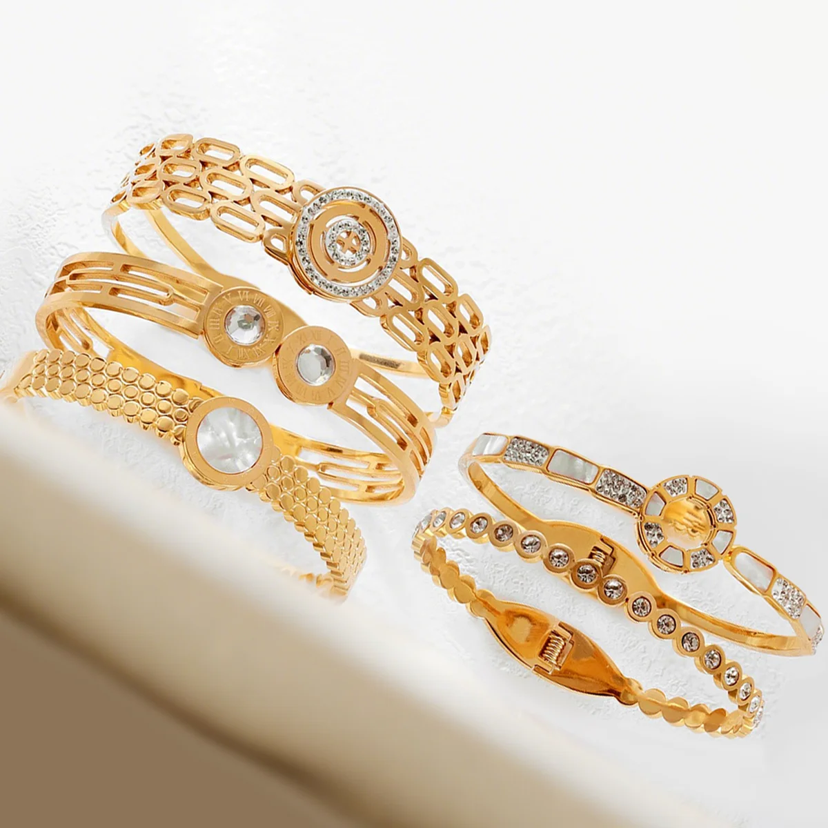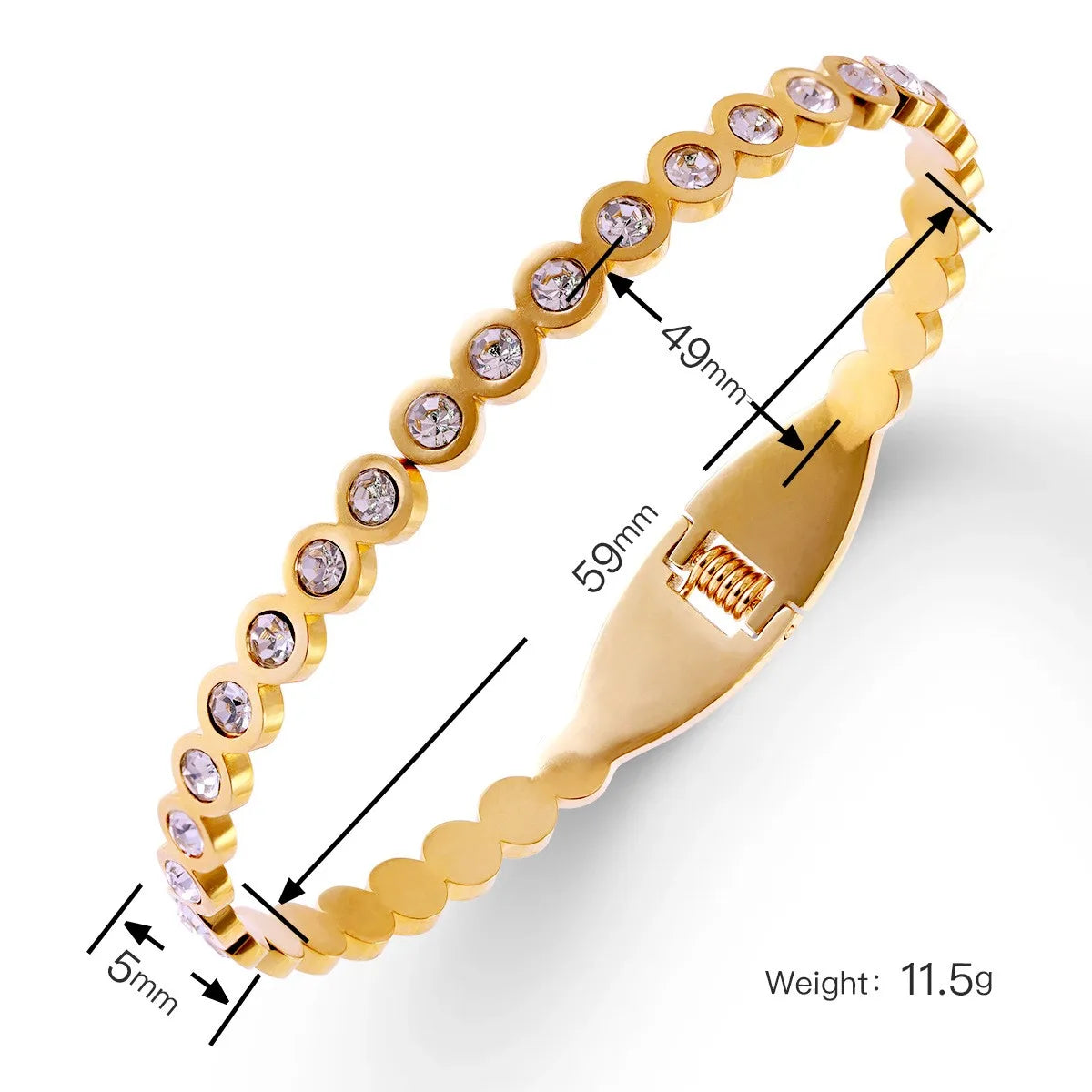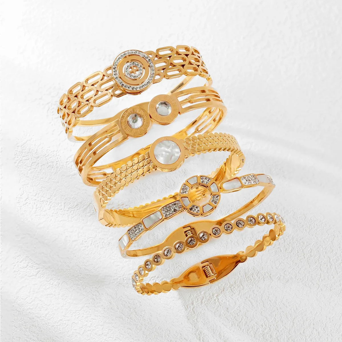 Wholesale 18K Gold Plated Roman Numeral Bracelet Stainless Steel Round Zircon Bangle Luxury Titanium Steel Jewelry for Women