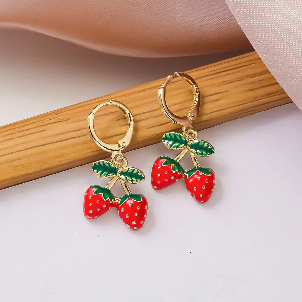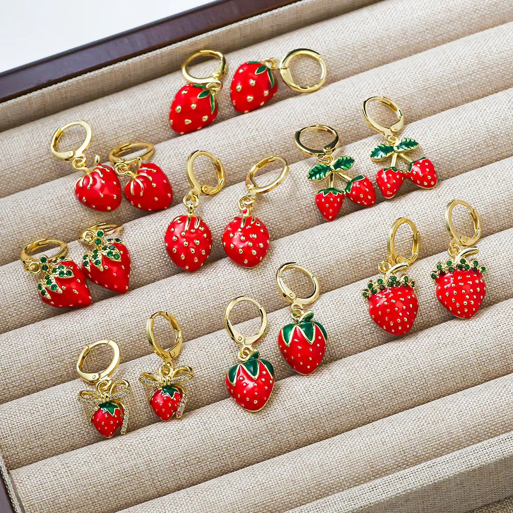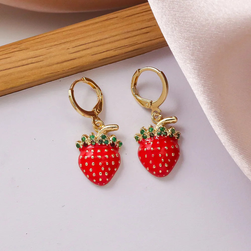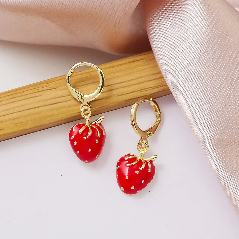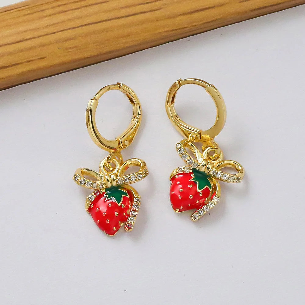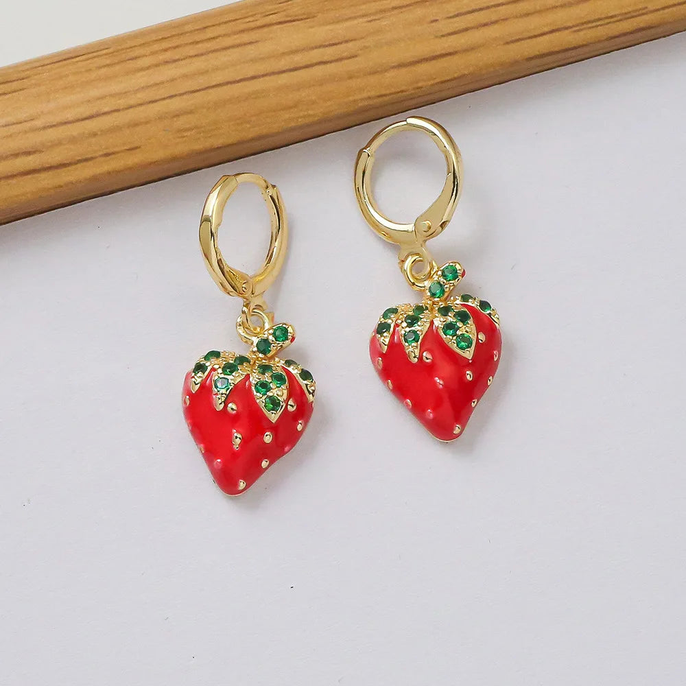 Wholesale 18k Gold Plated Hoop Earrings Cute Brass Strawberry Enamel Earrings for Women Girls